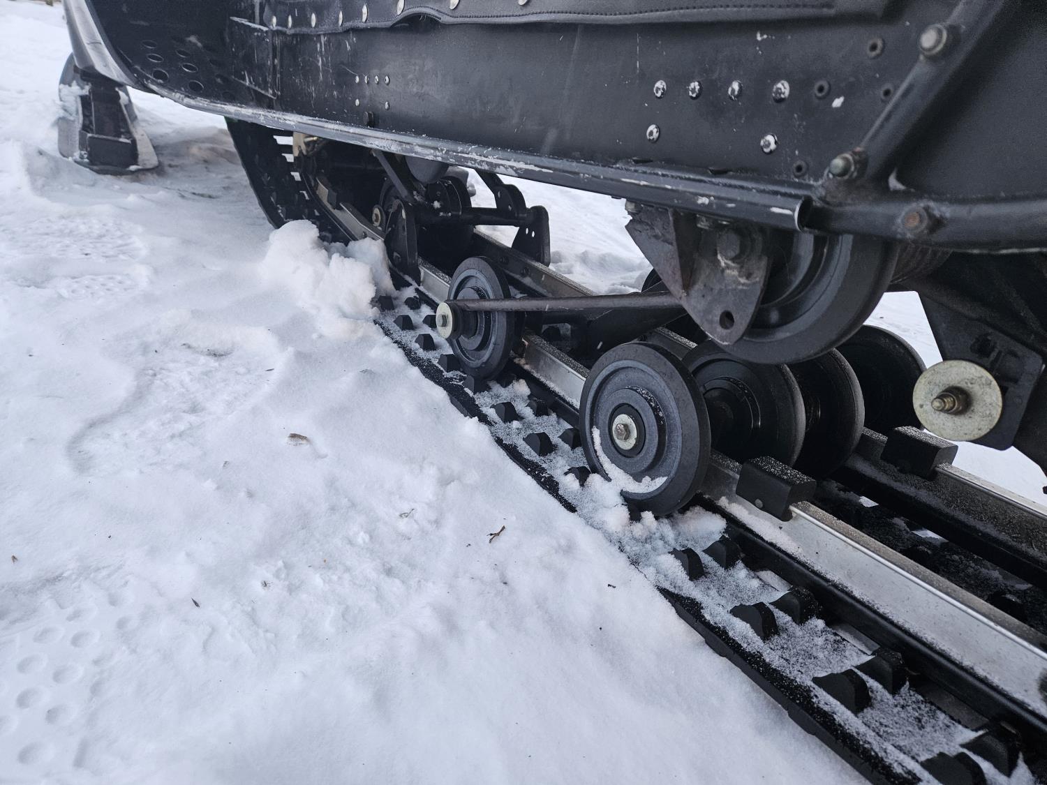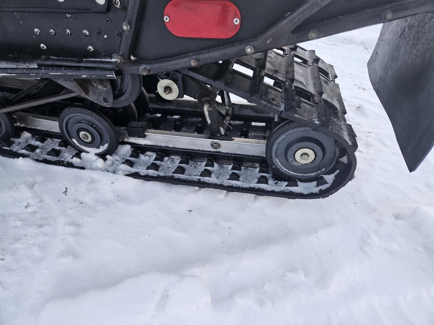 440 cc 2 cylinder Fan cooled engine, windshield, 151 inch track, rear tow hitch, hand warmers, articulating rear end, 16" wide track