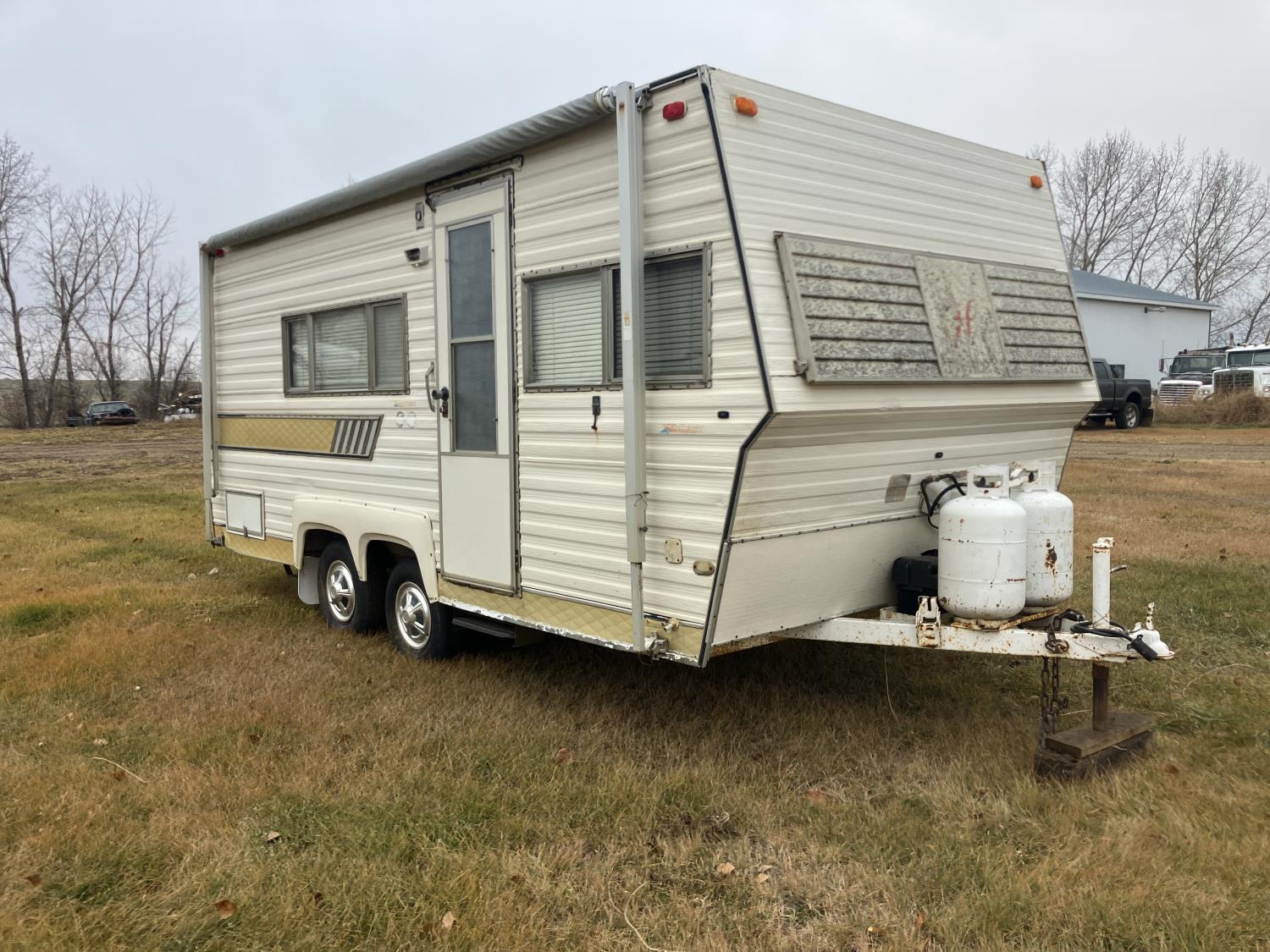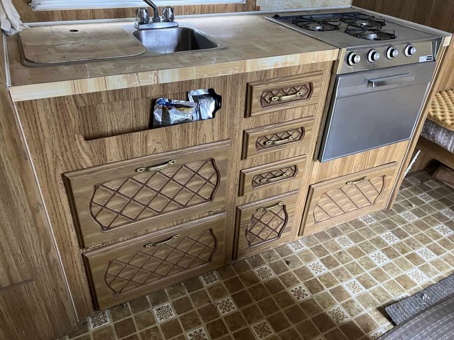 stove, full bath, A/C, manual awning, furnace, (2) propane tanks, P195/75R14 tires