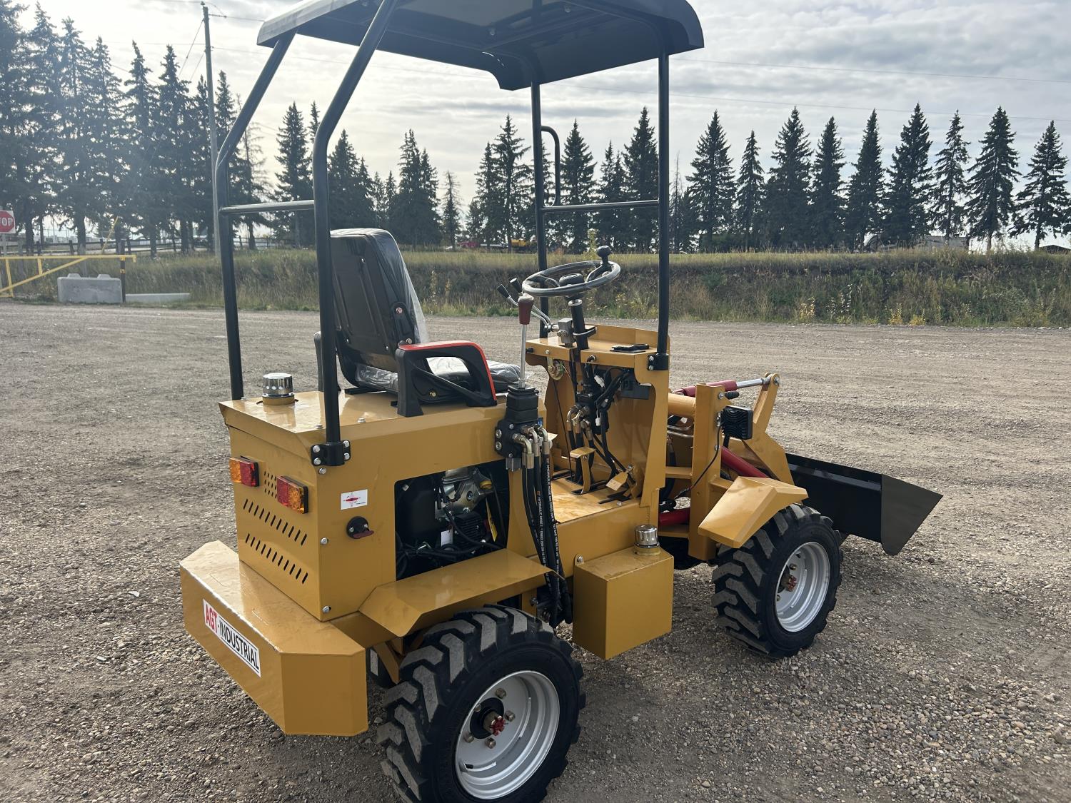 Open station with canopy, gas engine, 3 speed manual transmission, 39 inch smooth bucket,