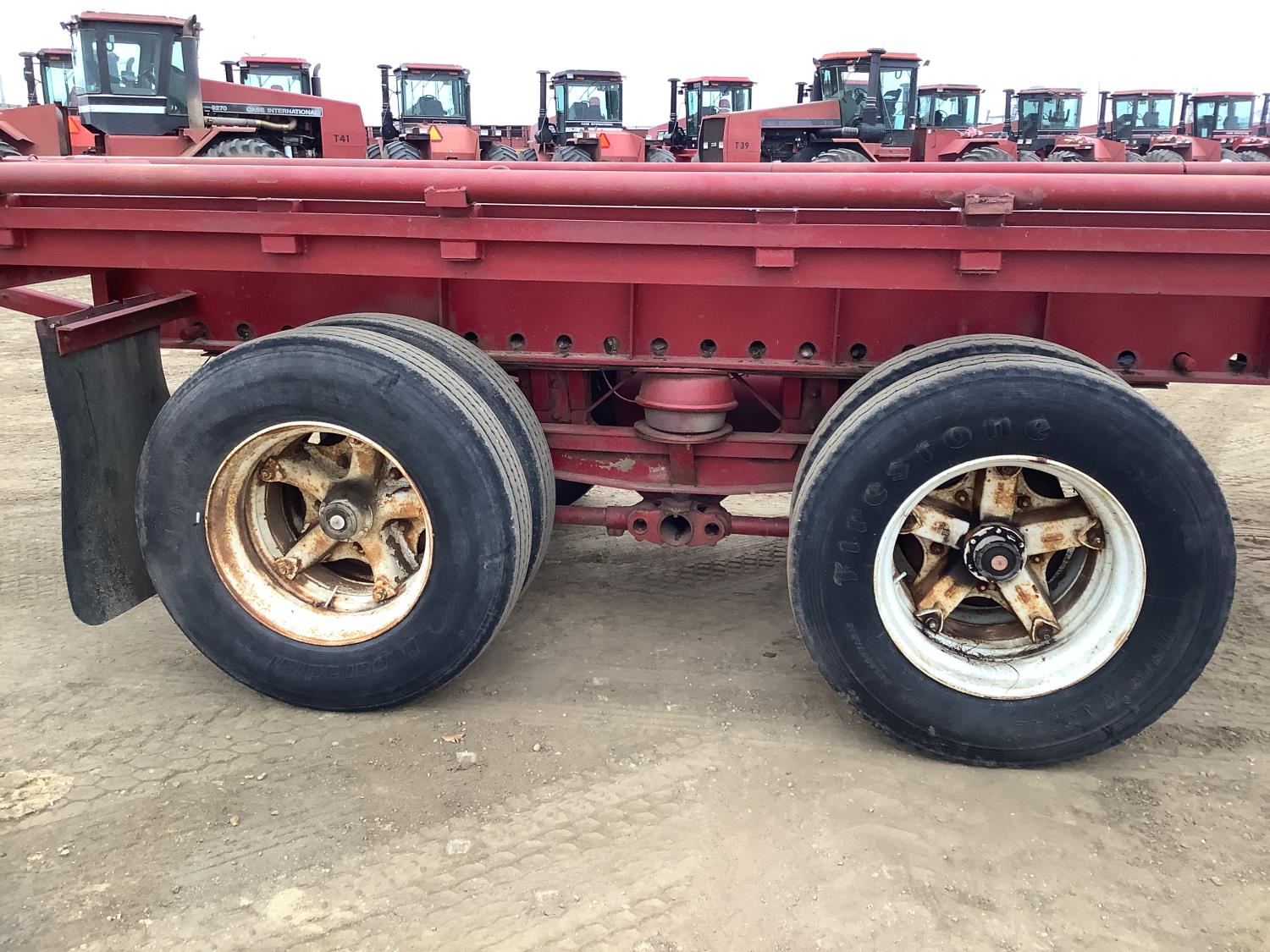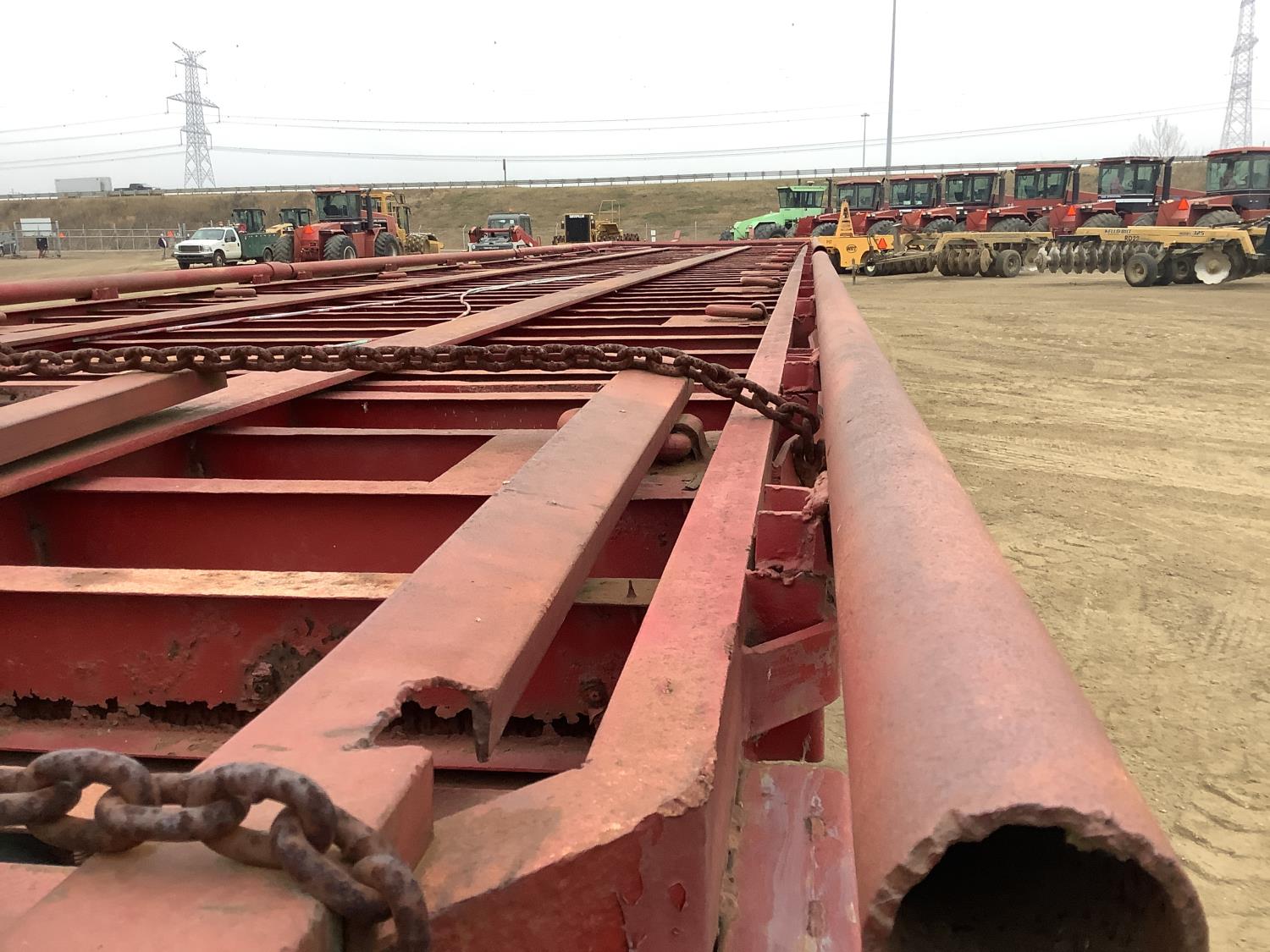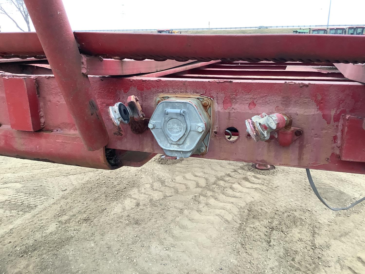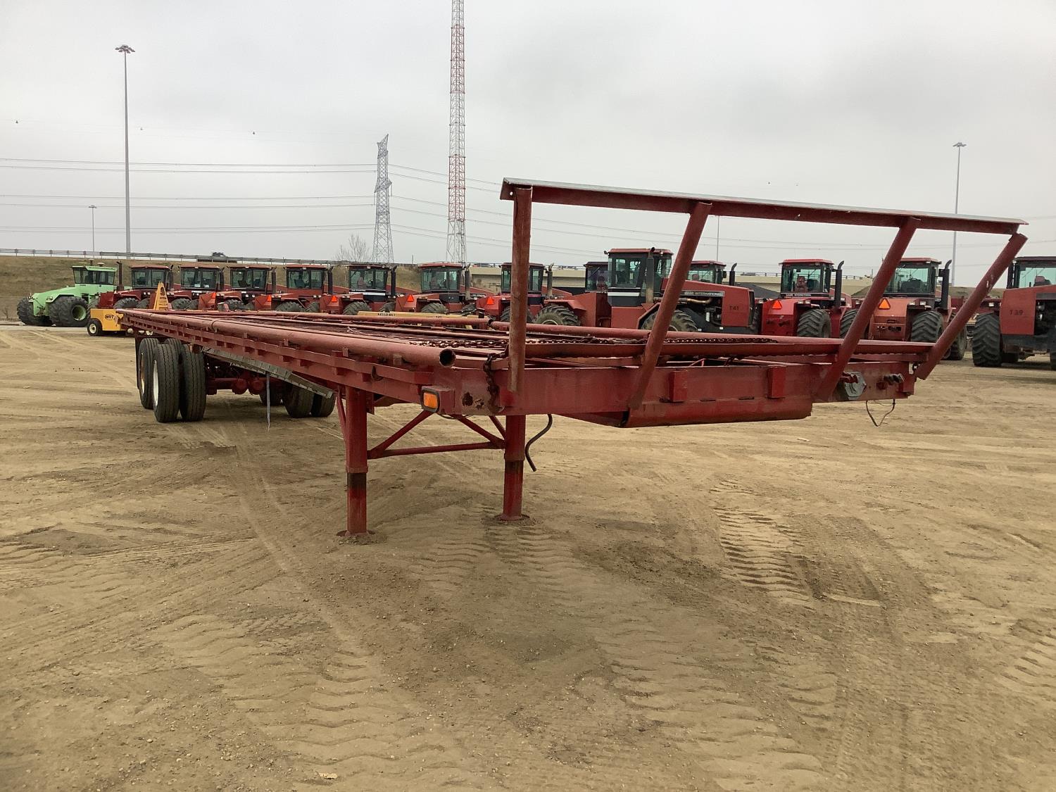 102 inch wide deck, bale extensions, working lights, (there is no deck boards on this trailer), walking axles suspension, 11R24.5 tires