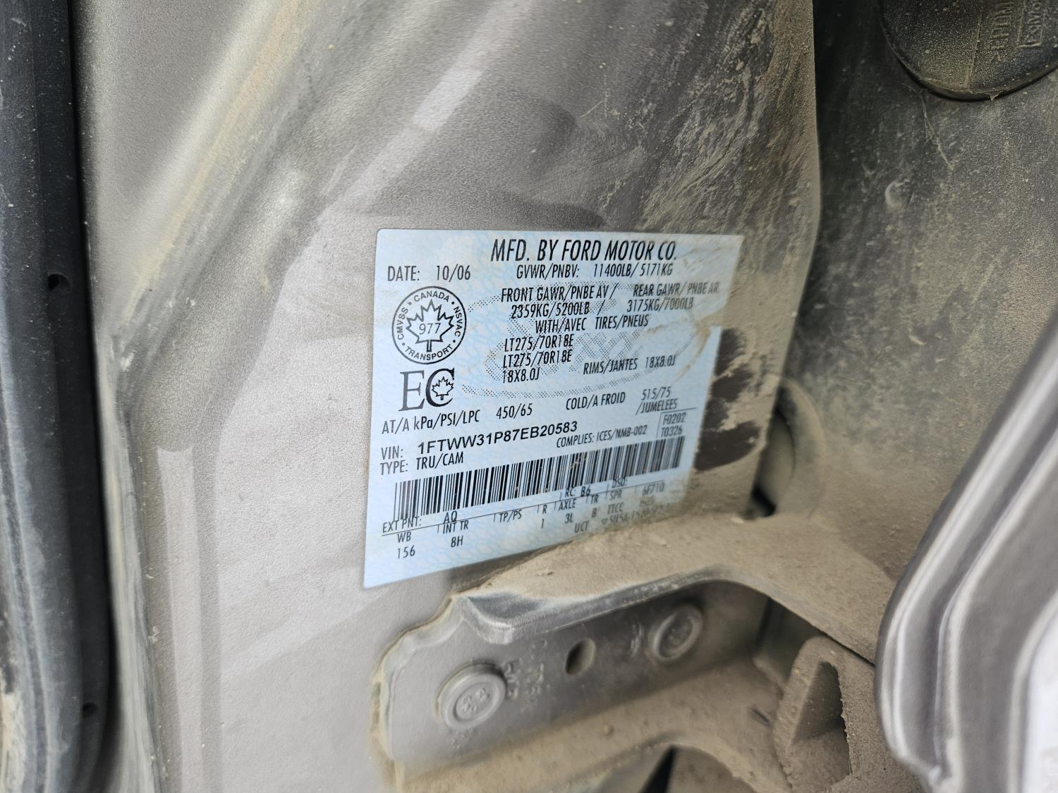 - 1FTWW31P87EB20583