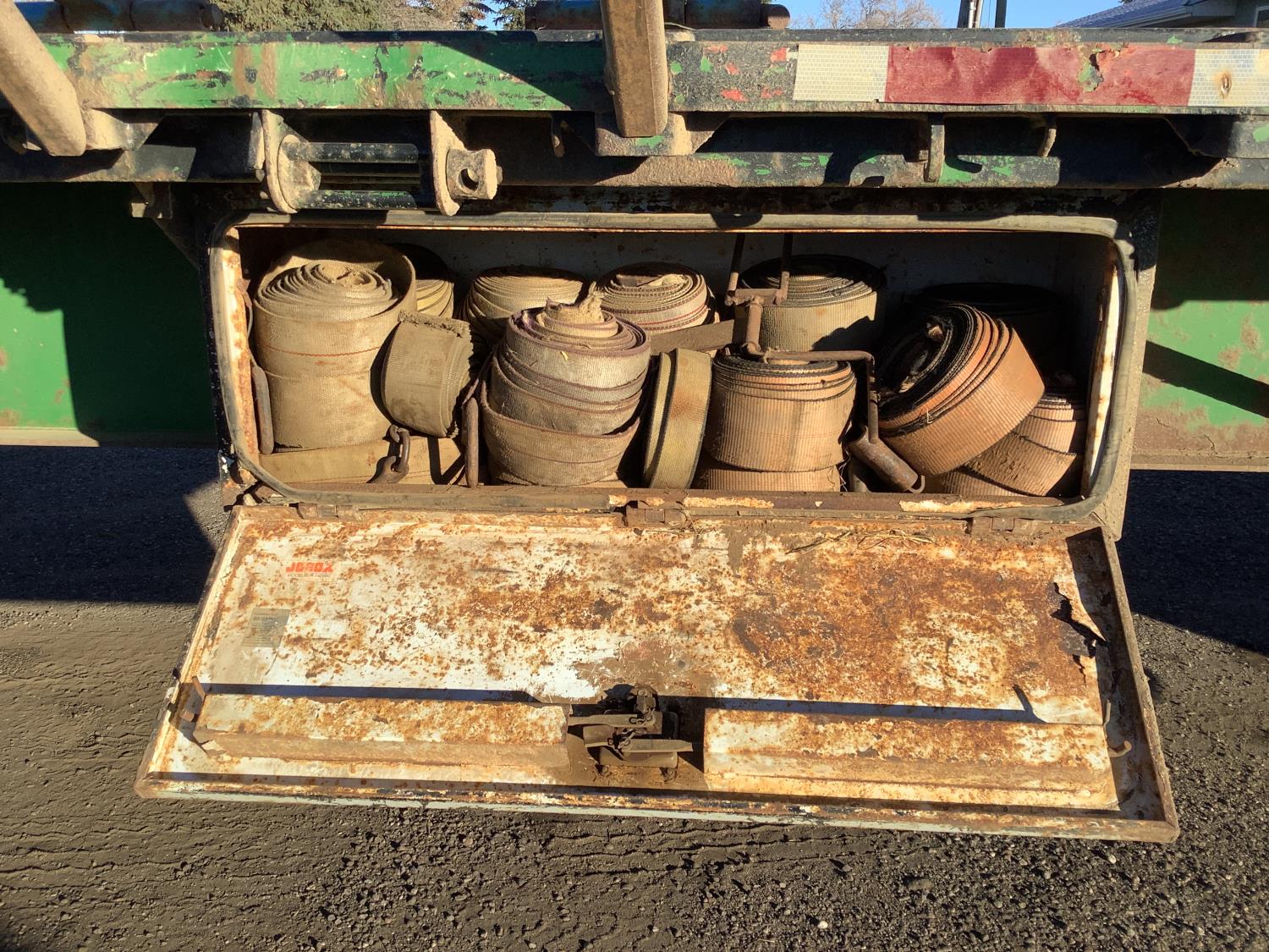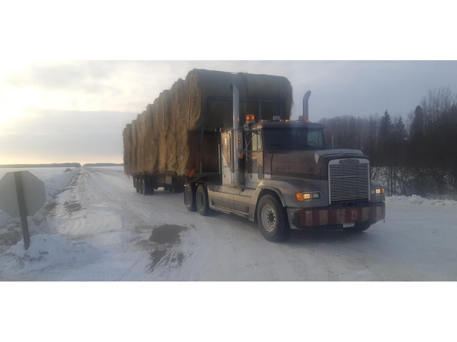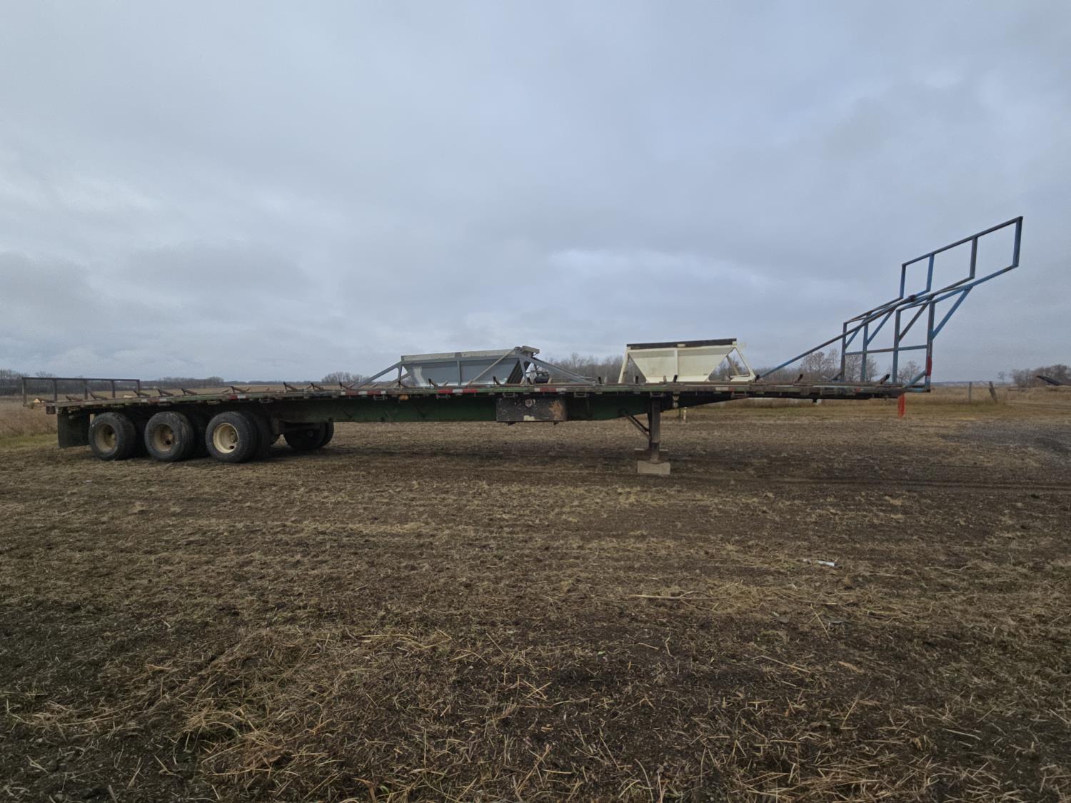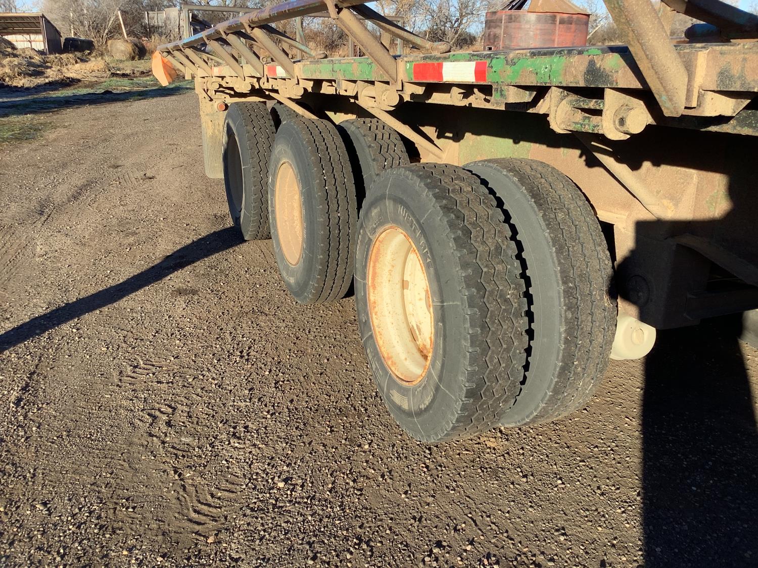 3 Bar winch's on both sides, tool box with full set of load straps, DOT fold in round bale extensions up to 10-1/2 ft wide plus front and rear bale extensions, pull out wide load lights, air ride suspension, 11R22.5 tires