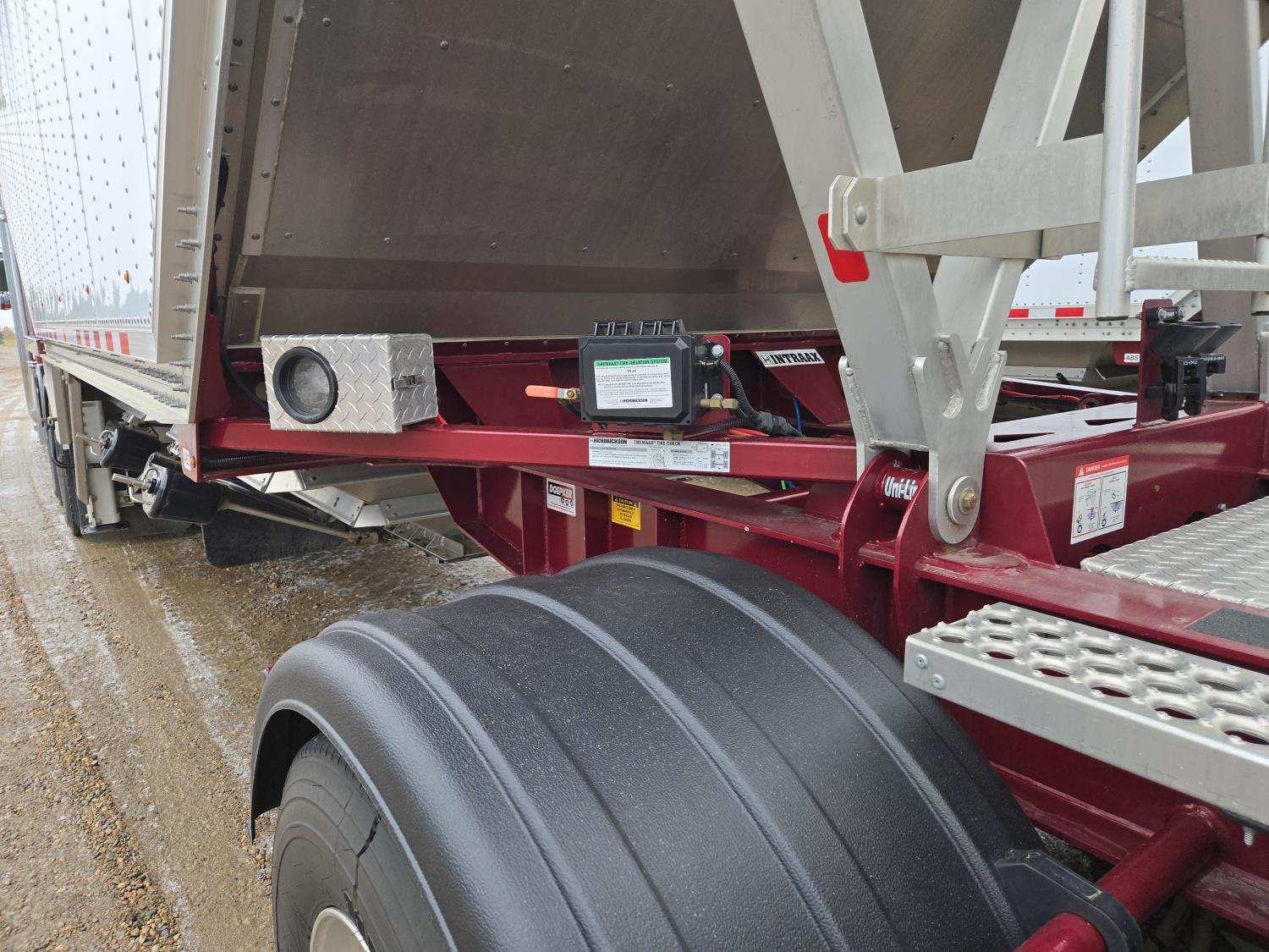 Michel's electric tarp and hopper openers, hand operated remote controls, 3 auto lift axles, extra light package, tire Max Pro, all aluminum wheels, 11R22.5 tires