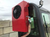 Enclosed cab, A/C, 15 inch dig bucket, manual coupler, hydraulic thumb, 32 inch stick, backfill blade, 7 inch rubber tracks