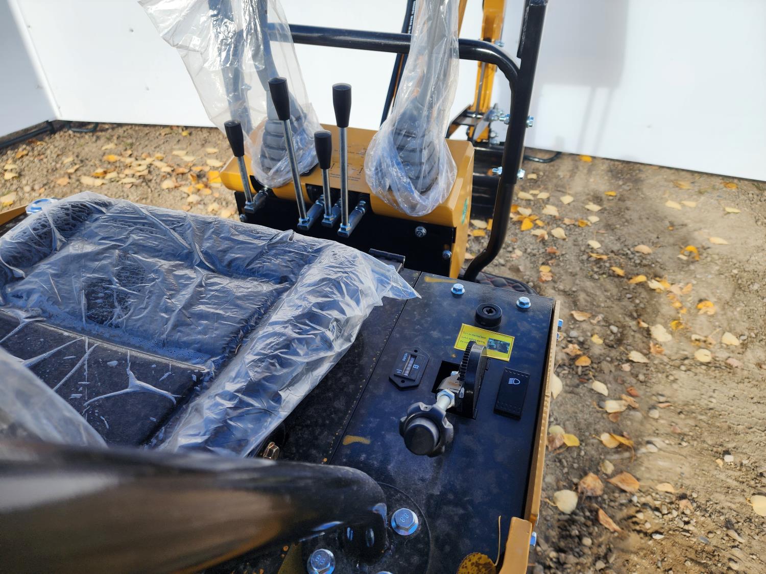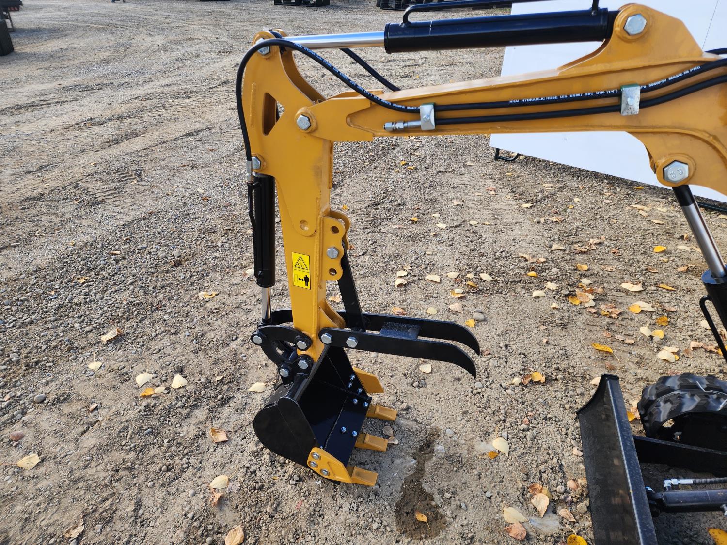 Open station, gas engine, canopy, 15 inch dig bucket, manual thumb, 1 auxiliary hydraulics, 32 inch stick, backfill blade, 7 inch rubber tracks