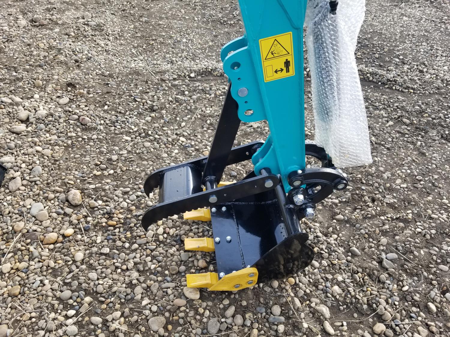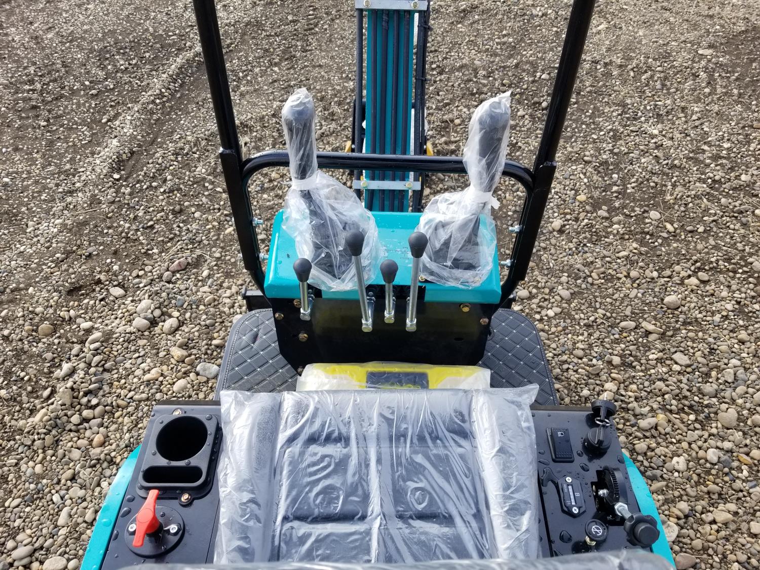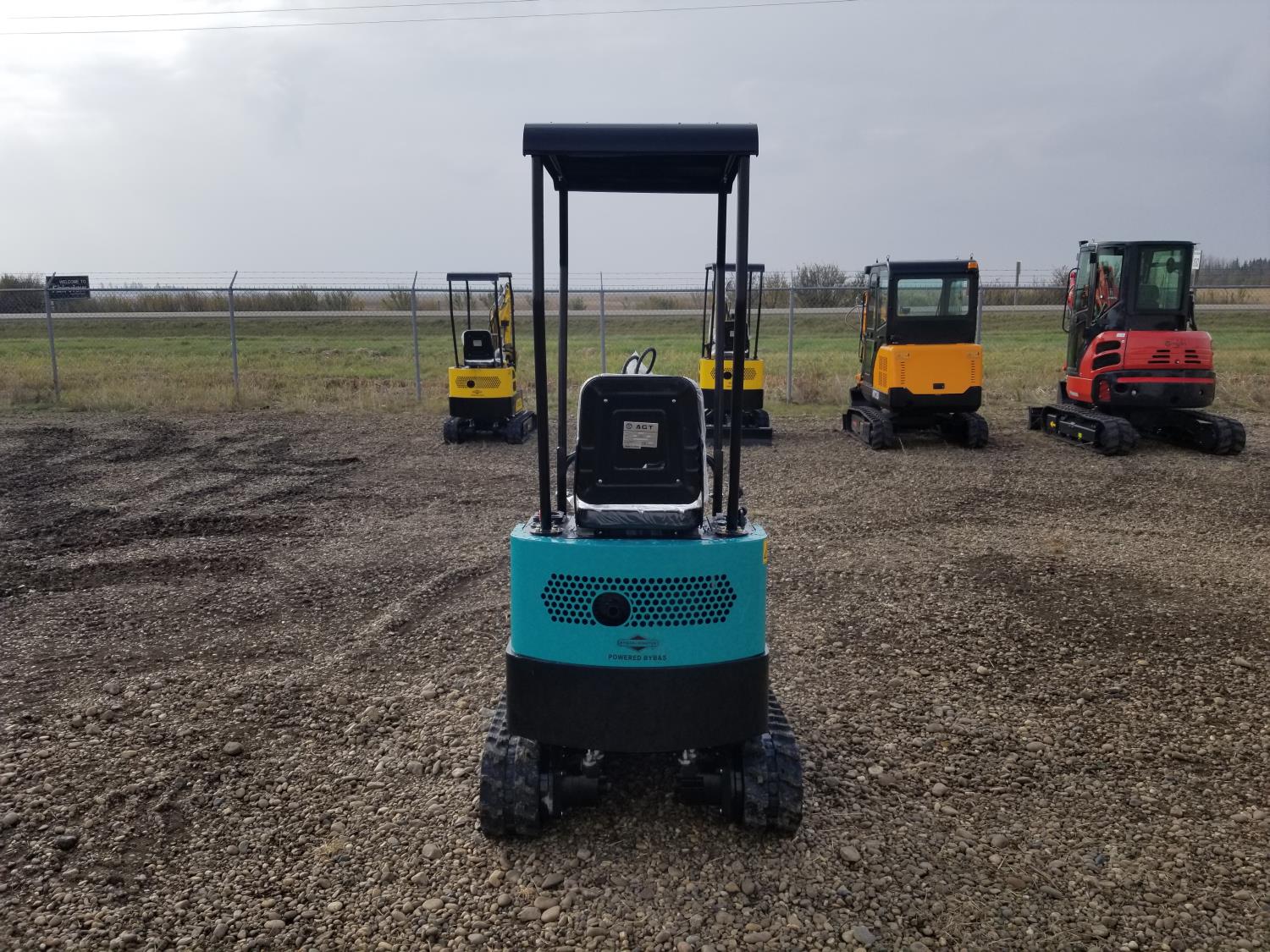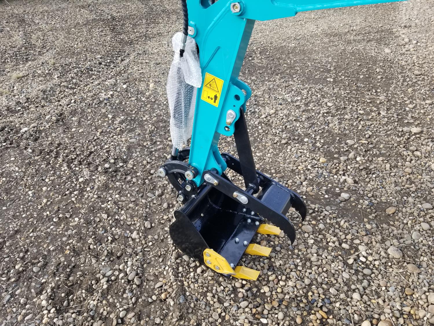 Open station, 13.5 HP gas engine, 15 inch dig bucket, manual thumb, 32 inch stick, 7 inch rubber tracks