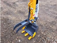 Open station, gas engine, 15 inch dig bucket, manual thumb, 32 inch stick, backfill blade, 7 inch rubber tracks