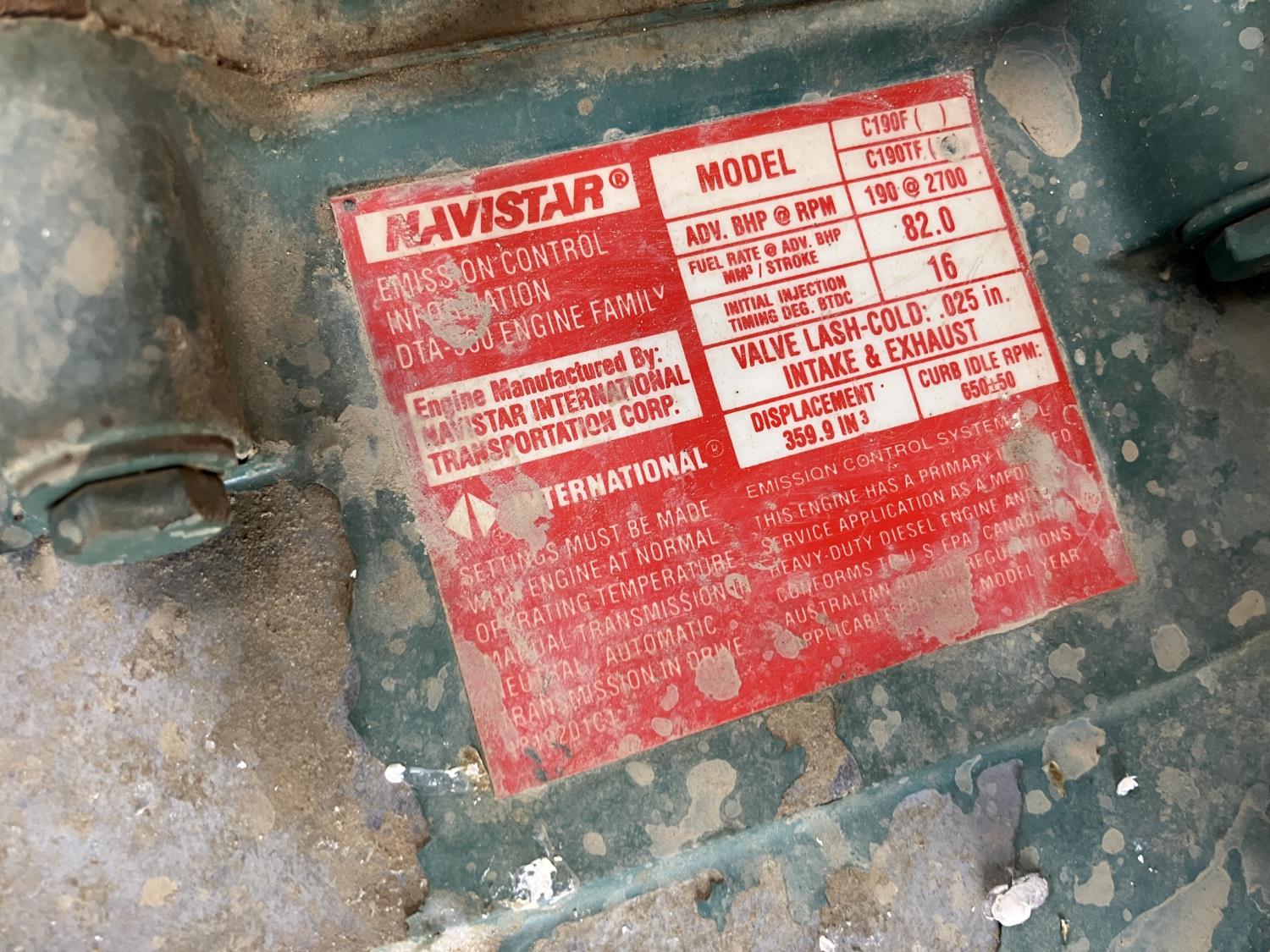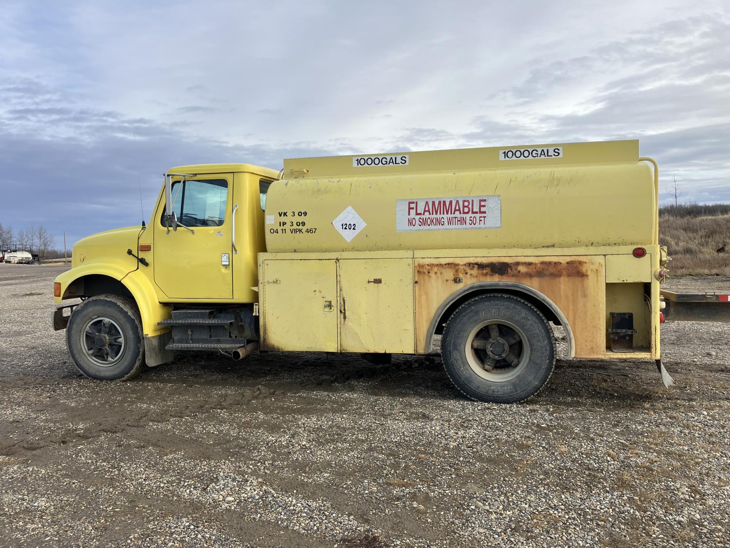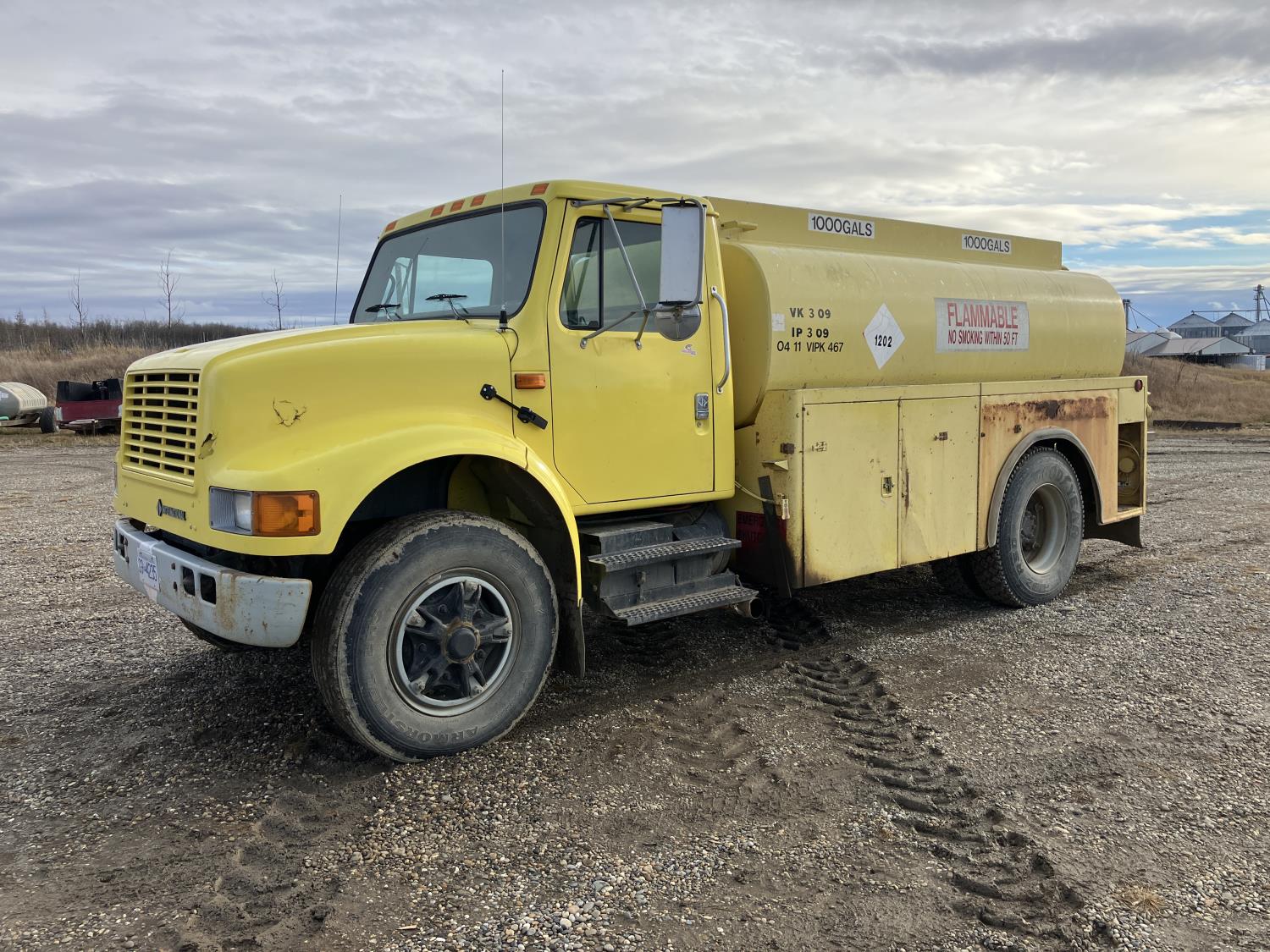 Navistar C190TF 6 cylinder diesel engine, 4 speed automatic transmission, 2000 gallon fuel tank, fuel unload hoses on each side, meter on right side, spring suspension, 170 inch WB, air brakes, 295/75R22.5 tires