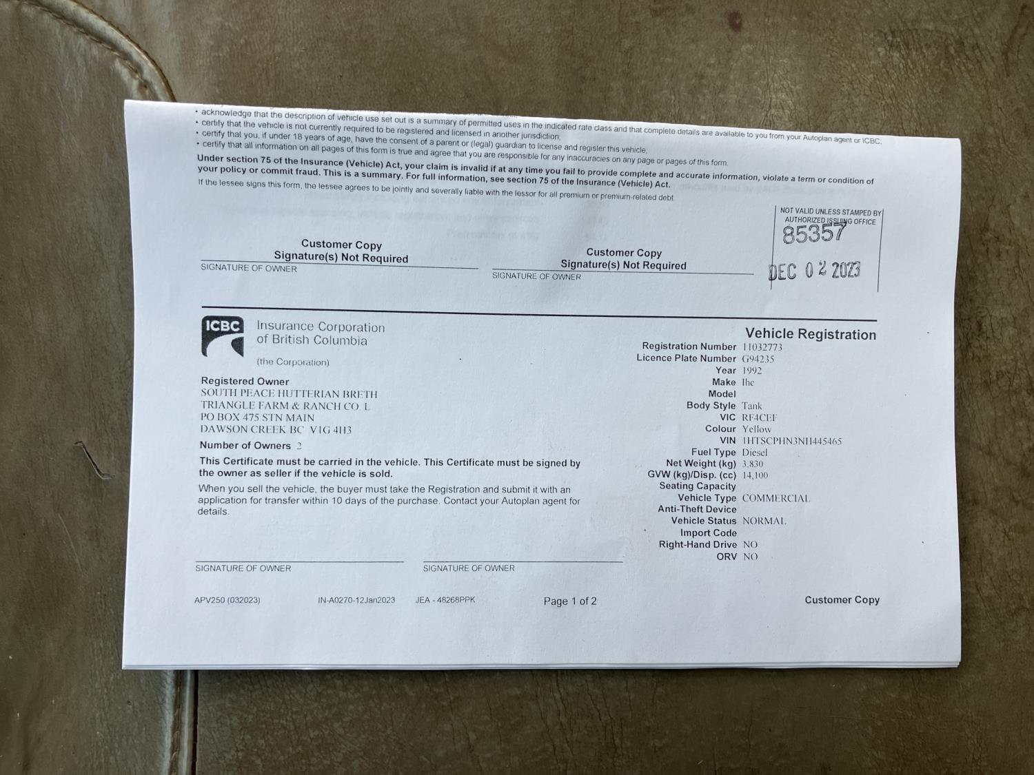 Copy of registration on hand. - Location: