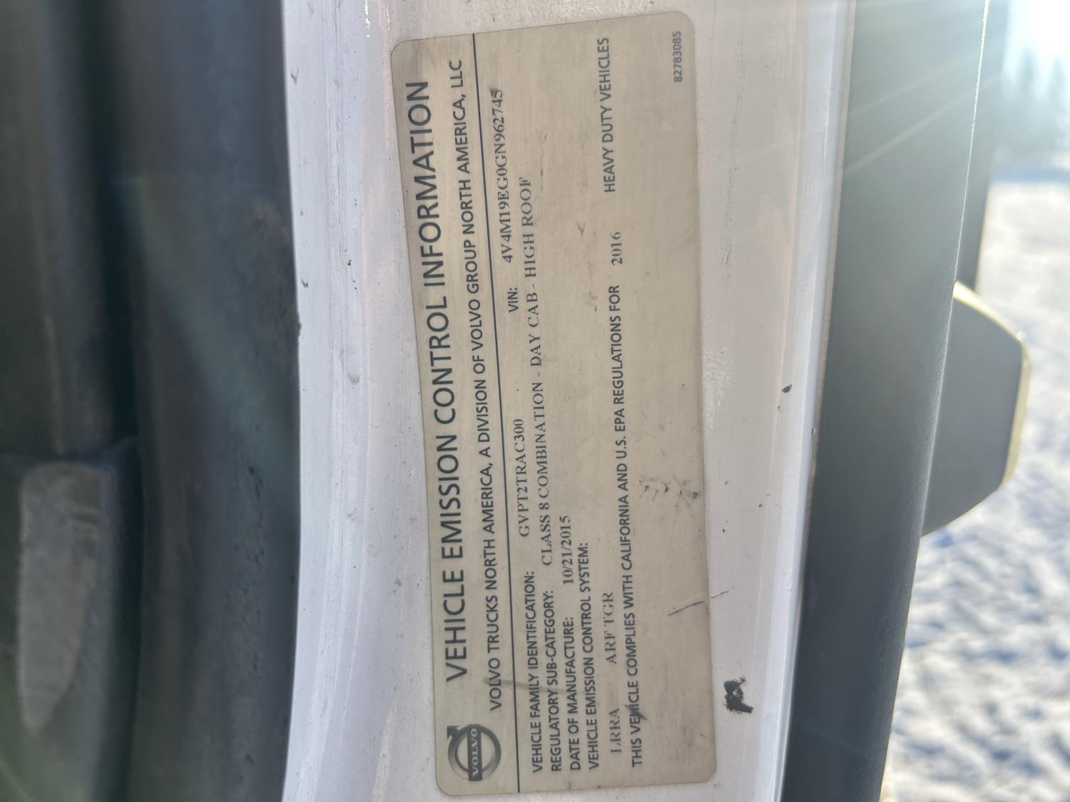 307A 2016 Volvo VNM S/A Day Cab Truck Tractor