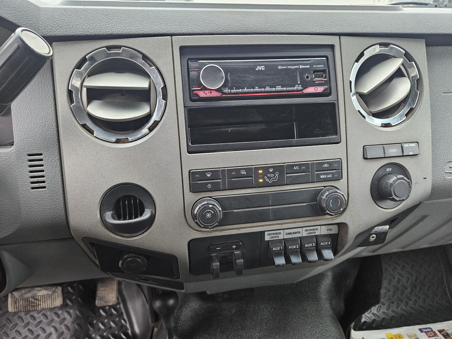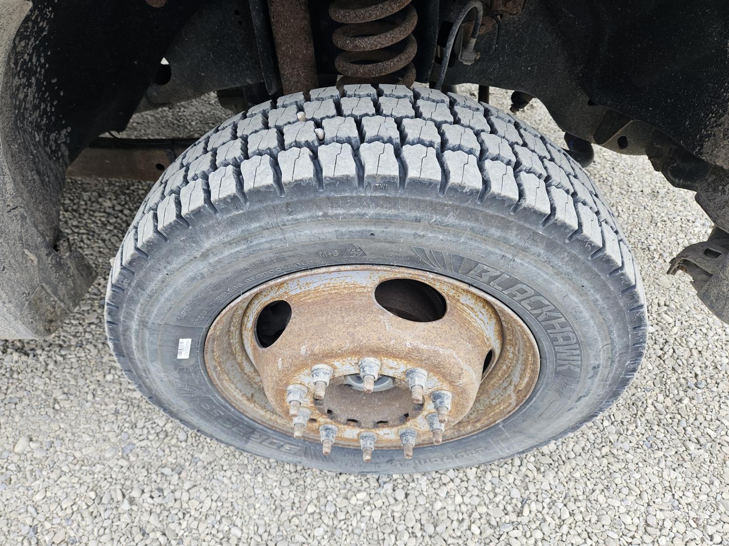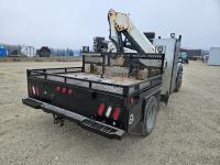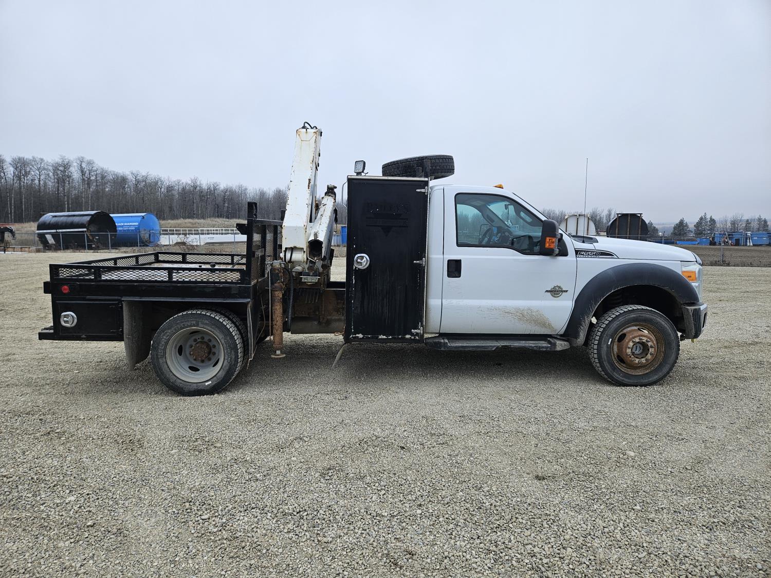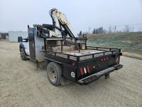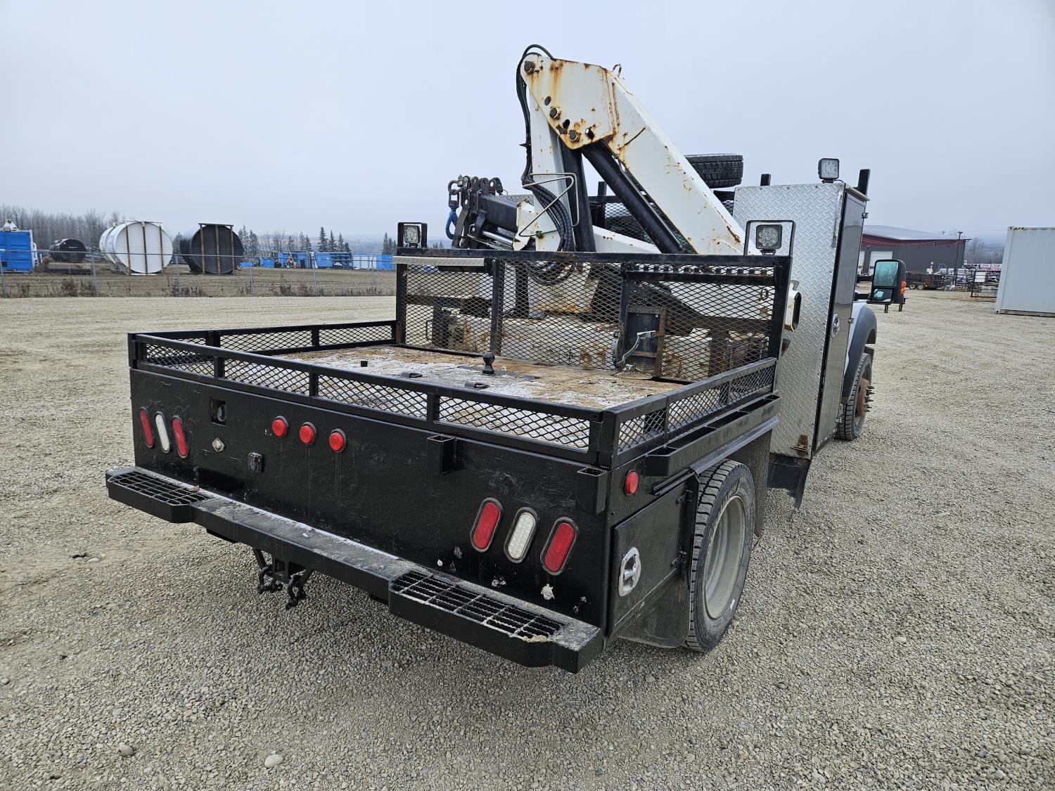 Powerstroke 6.7 L V8 diesel engine, positive air shutoff, automatic transmission, A/C, cruise control, stereo, hydraulic wet kit, steel tool boxes, 96 inch x 66 inch deck, wood decking, rub rails, stale pockets, fold down sides, gooseneck hitch, IMT 6/39K3 3 section 26 ft knuckle crane, outriggers, 225/70R19.5 tires