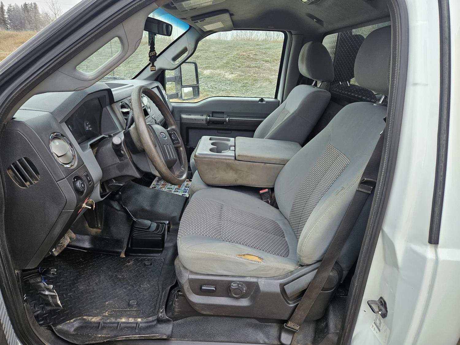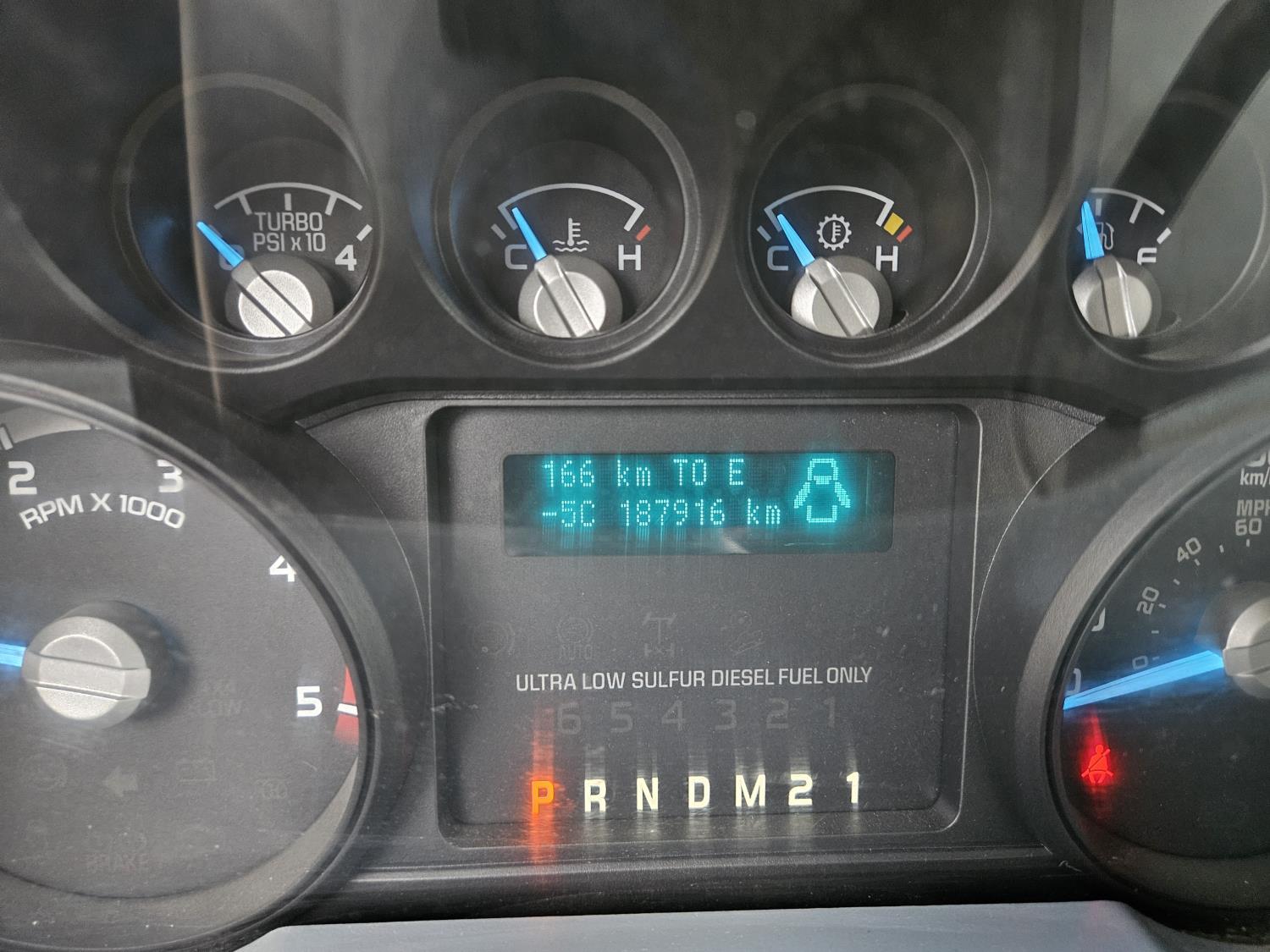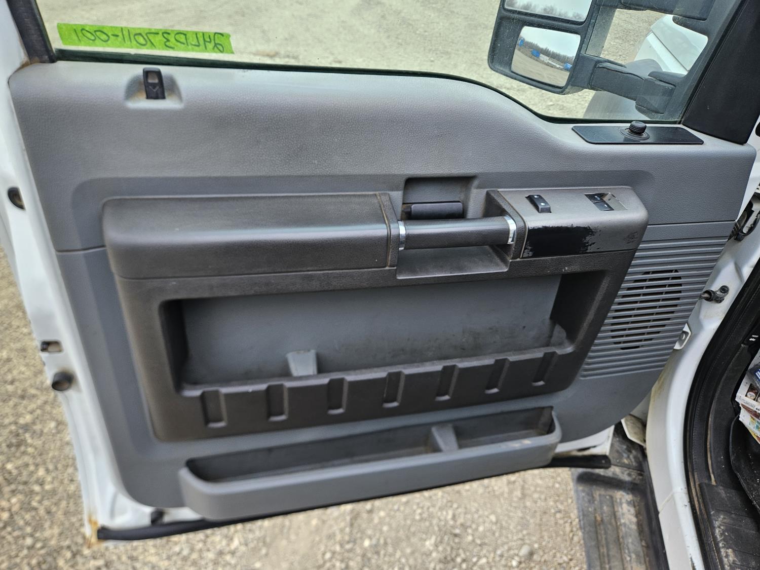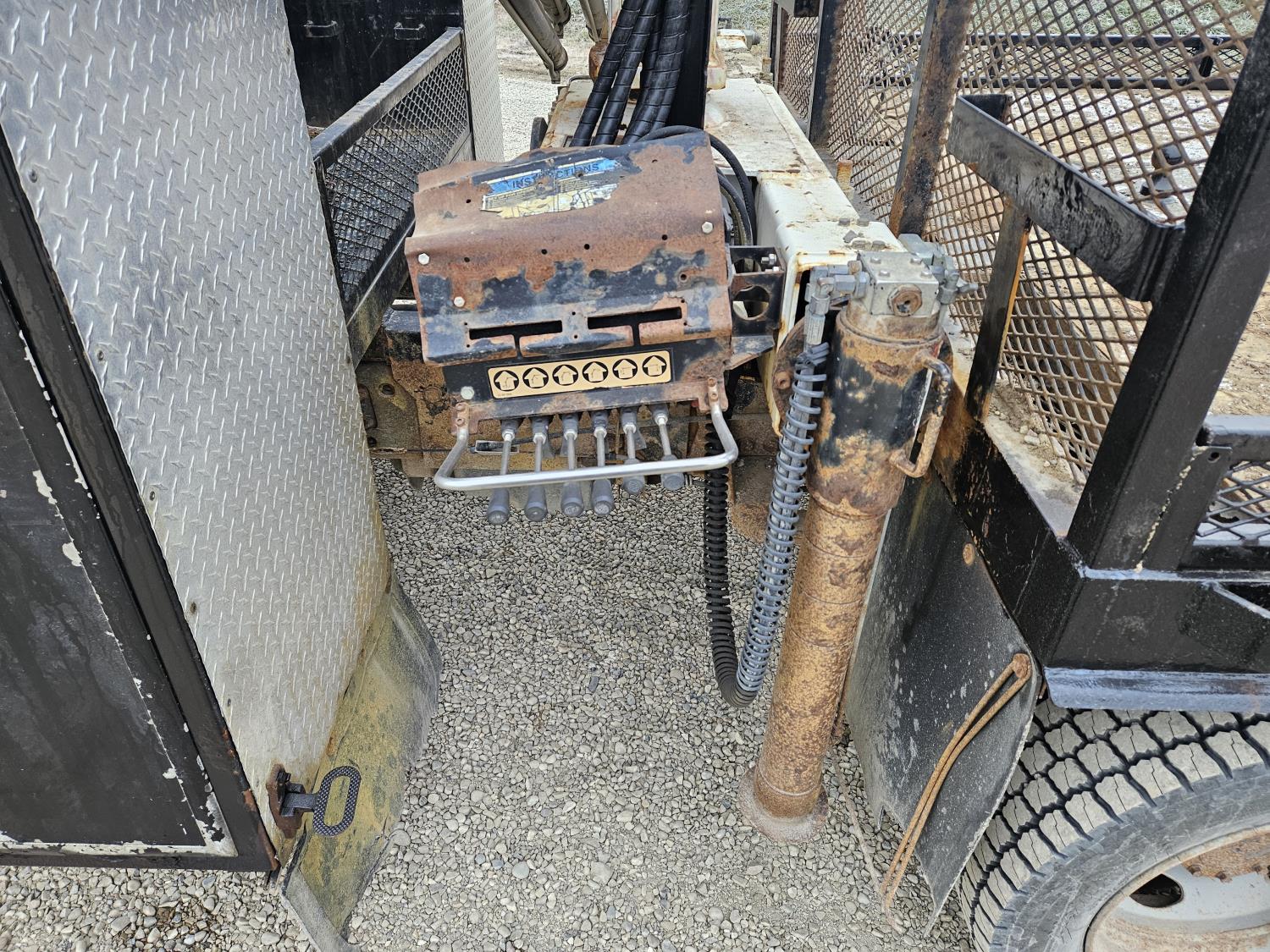 Powerstroke 6.7 L V8 diesel engine, positive air shutoff, automatic transmission, A/C, cruise control, stereo, hydraulic wet kit, steel tool boxes, 96 inch x 66 inch deck, wood decking, rub rails, stale pockets, fold down sides, gooseneck hitch, IMT 6/39K3 3 section 26 ft knuckle crane, outriggers, 225/70R19.5 tires