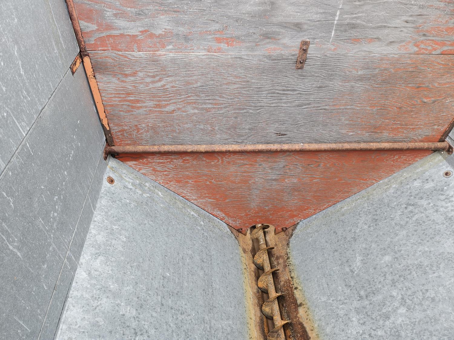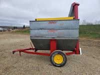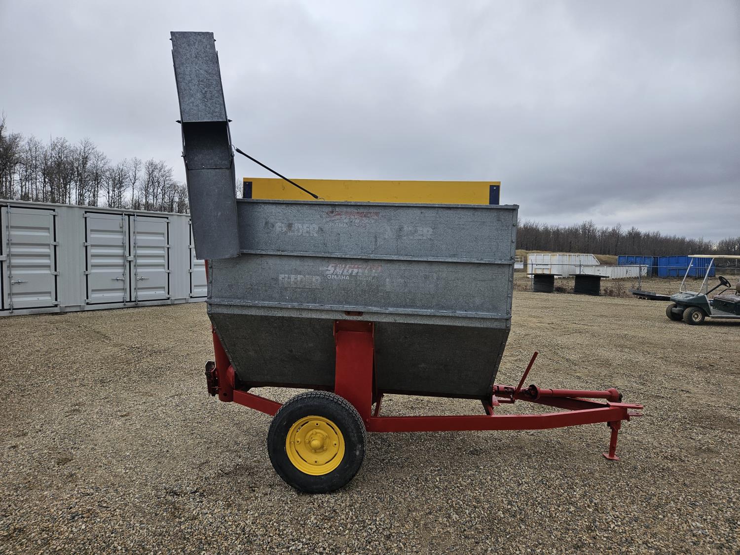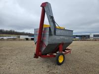 Set up to handle pellets, cubes, or grain. Spout will lower to unload into bunks or hay windrows
