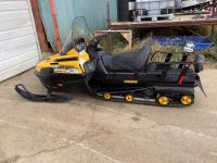 550 cc Rotax 2 cylinder Fan cooled engine, electric start, reverse, rear tow hitch, two speed transmission, dual carburetor's, wide track