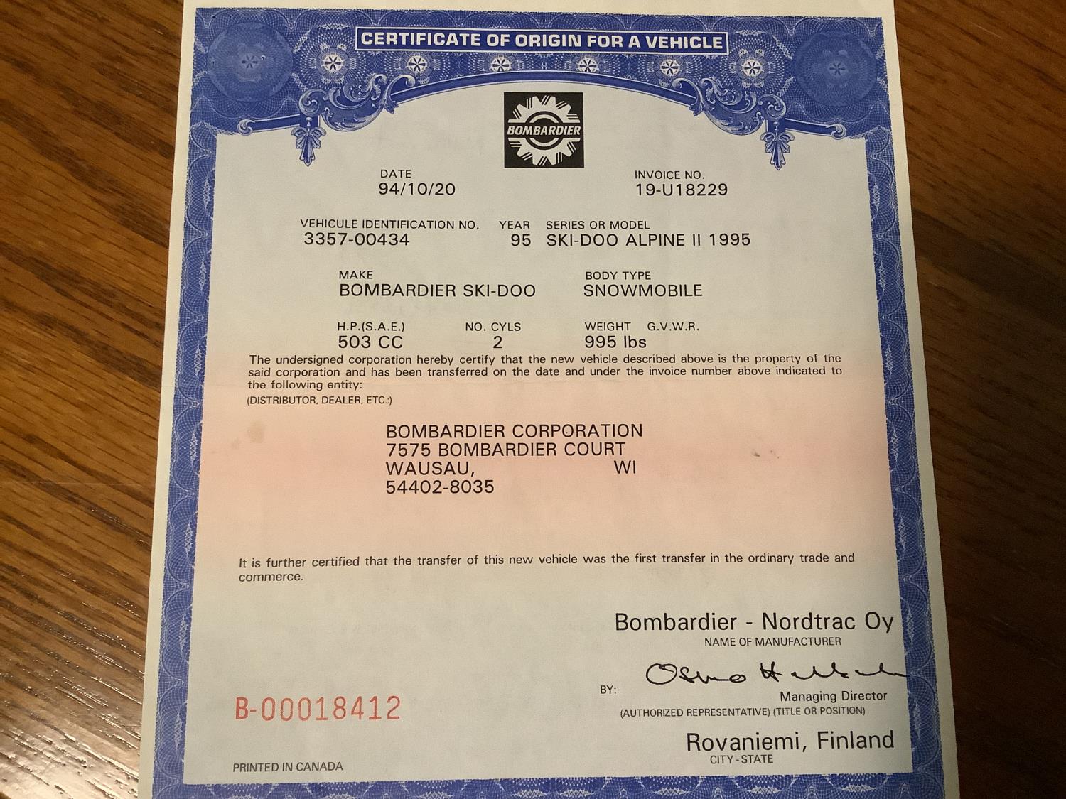 502 1995 Ski-Doo Alpine II Snowmobile