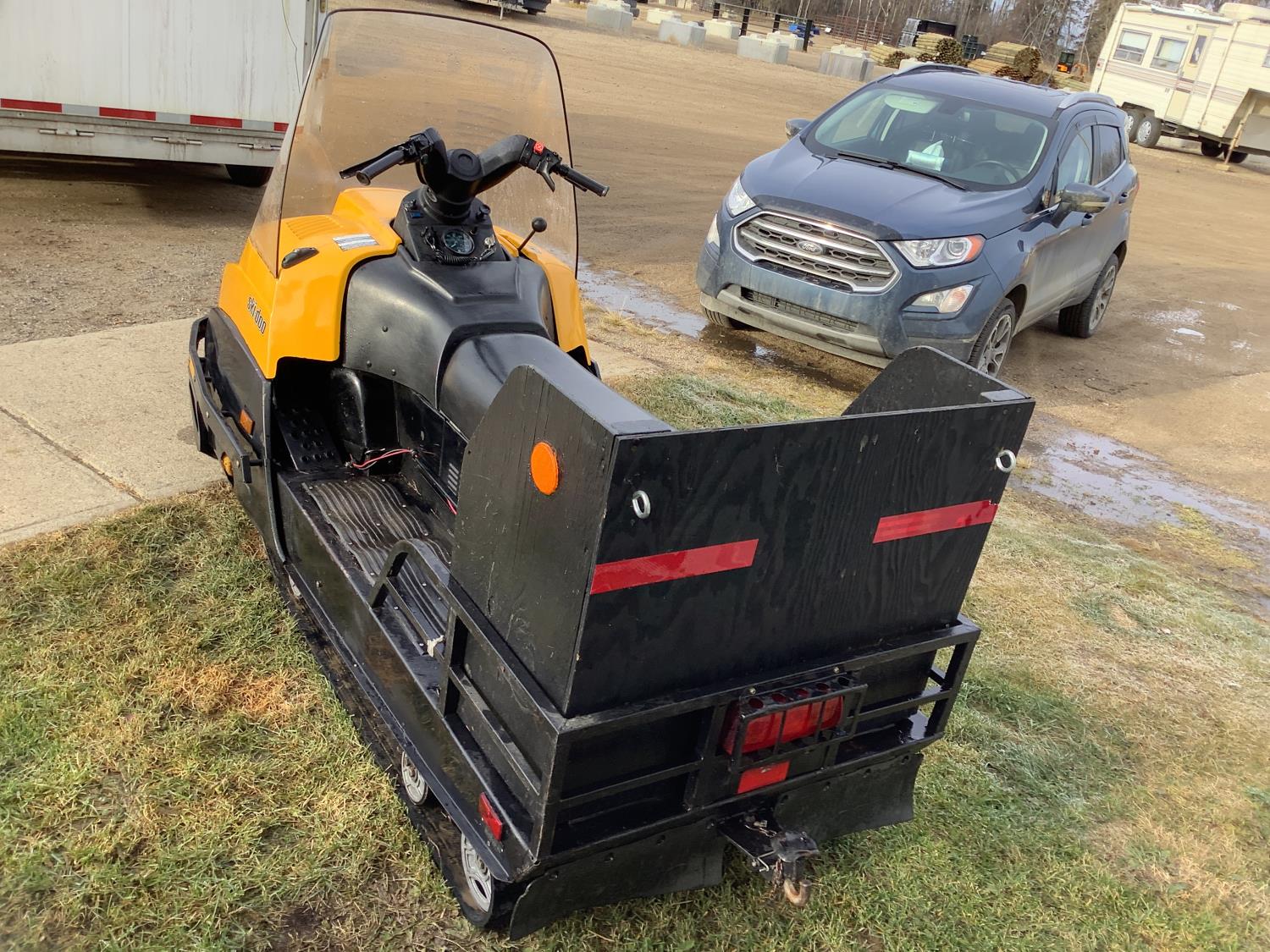 503 cc Rotax 2 cylinder Fan cooled engine, electric start, rear tow hitch, 2 speed transmission with reverse, 2 passenger seat plus custom built rear storage box, front mount electric winch, slide suspension