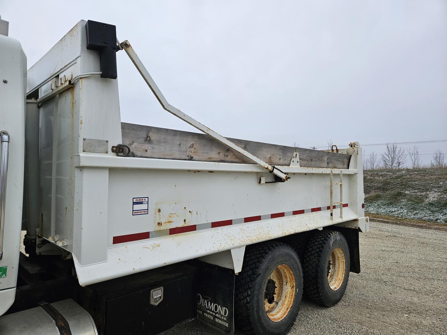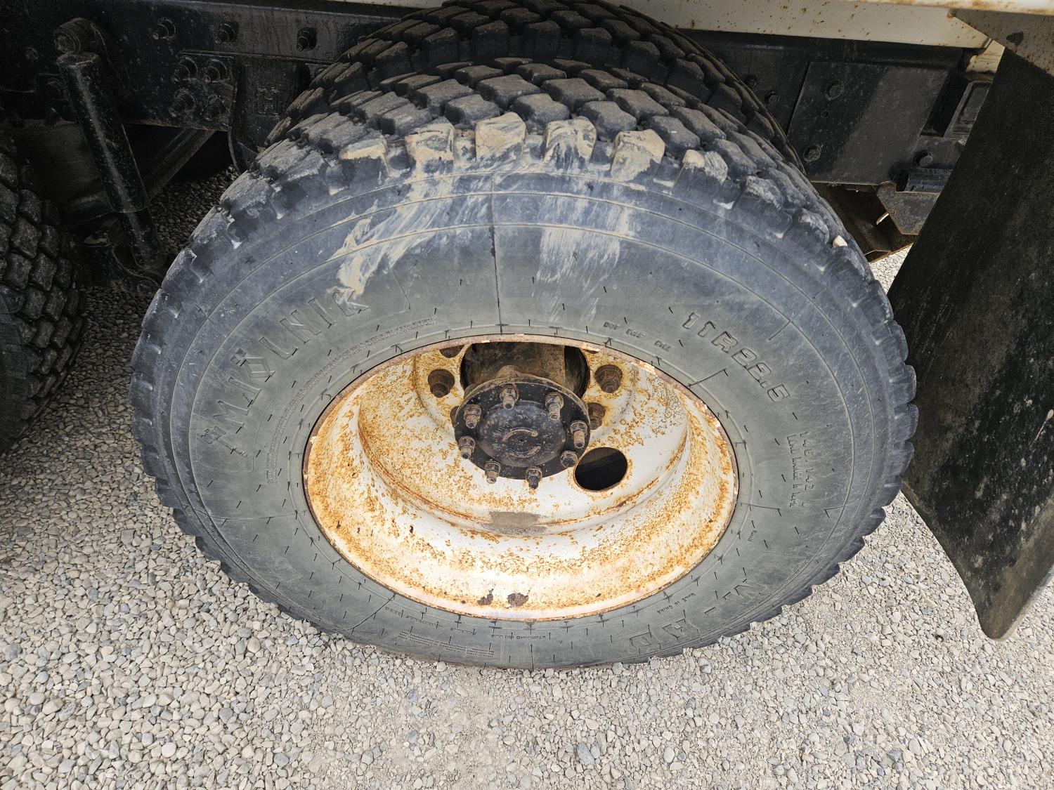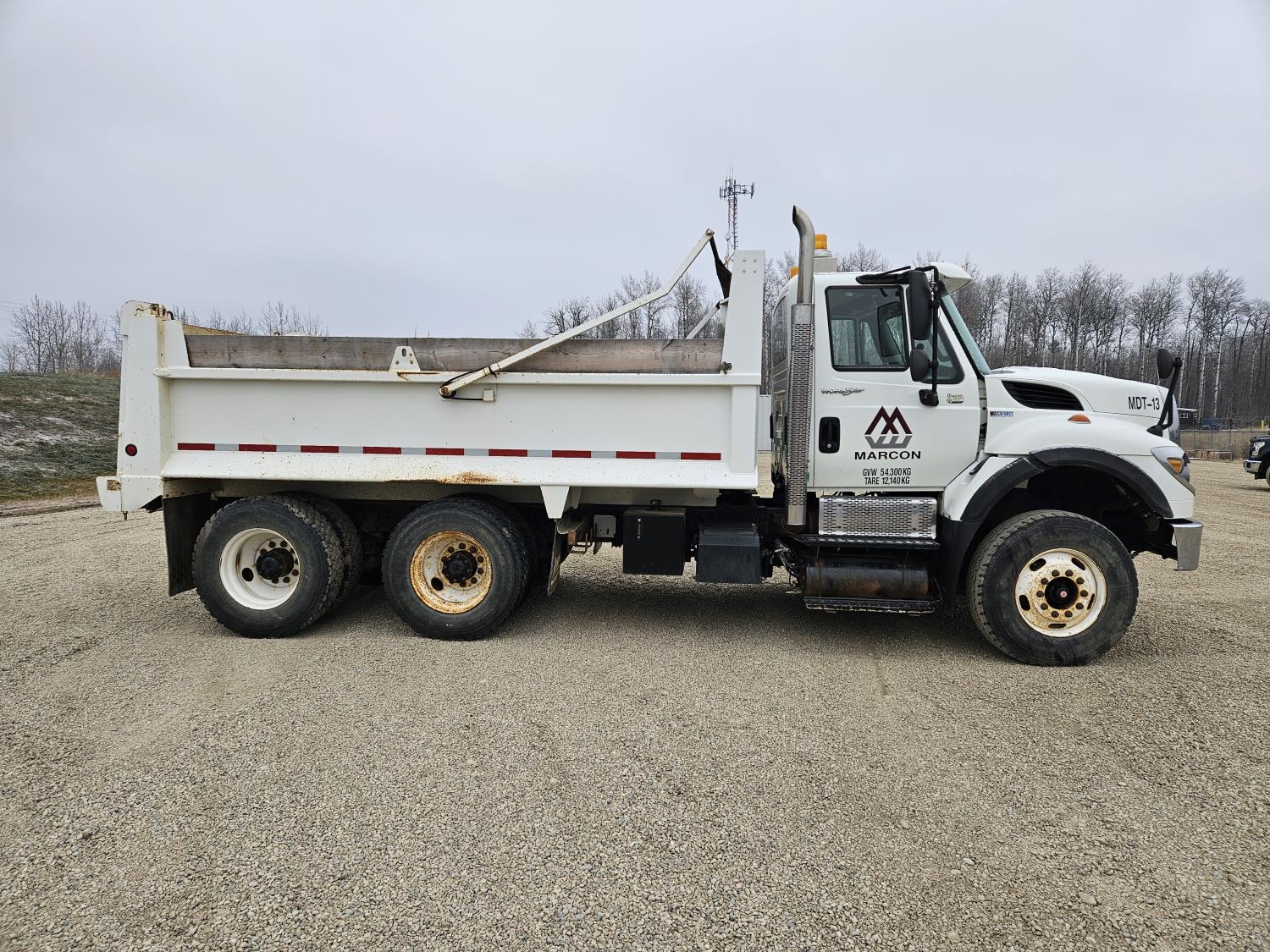 MaxxForce 9 330 HP engine, engine brake, Allison automatic transmission, A/C, air ride driver seat, radio, hydraulic wet kit, steel tool boxes, 15 ft box, hoist, chain holders, air ride suspension, 14,000 lb front axle, 40,000 lb rear axles, 3 way diff locks, 480 inch WB, electric roll tarp, 315/80R22.5 front tires, 11R22.5 rear tires
