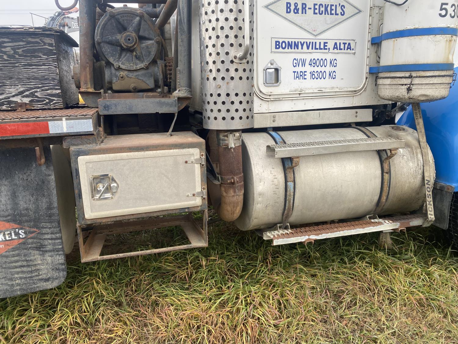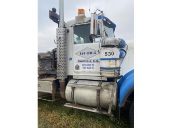Cummins diesel engine, engine brake, engine block heater, 5 & 4 20 speed manual transmission, headache rack, steel tool boxes, beacons, chain holders, Braden MS20-18B mechanical winch, diff lock, 425/65R22.5 front tires, 11R24.5 rear tires
