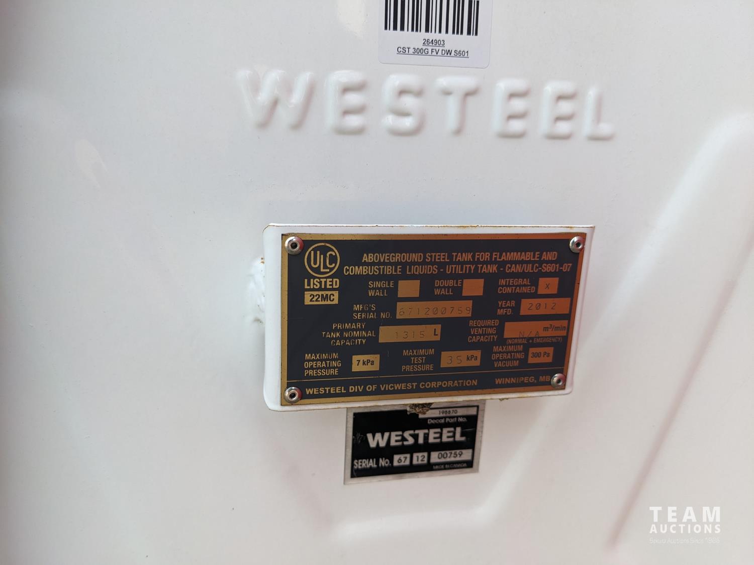 710 2012 Westeel 1315 Liter Integeral Contained Fuel Tank