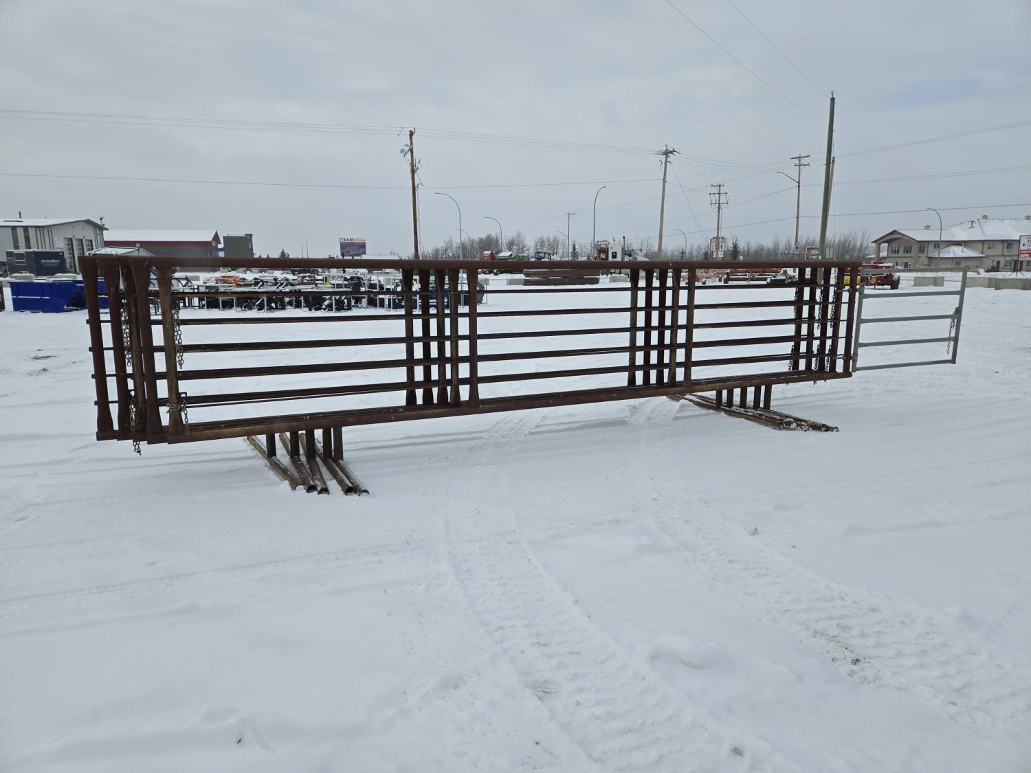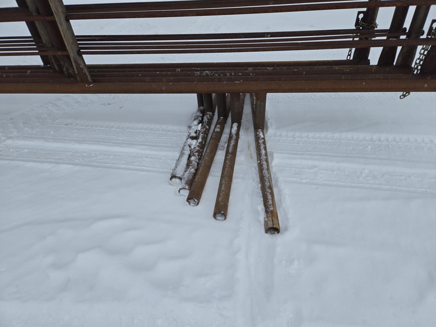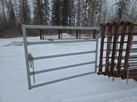 (1) with 6 ft gate, 2-7/8 pipe frame, (5) sucker rod rails, (2) connector chains on one end