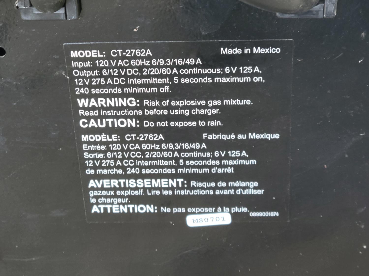 826 Motomaster CT-2762A Battery Charger with Engine Start and Battery Tester