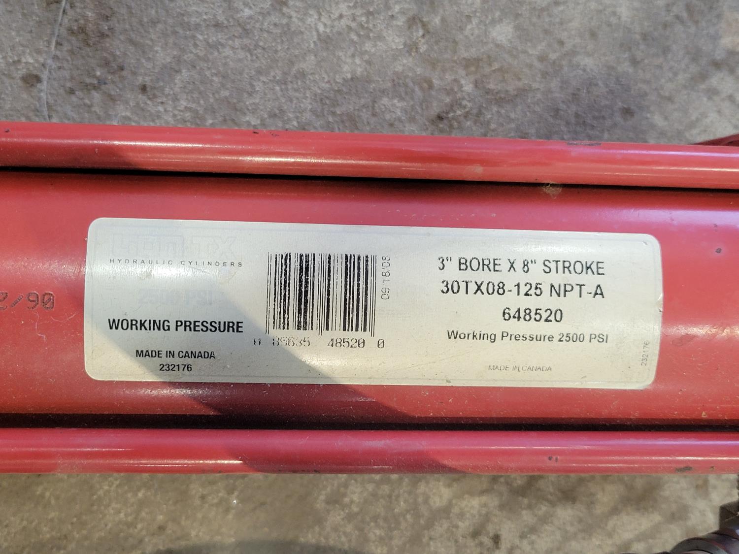 Cylinder 3 inch bore, 8 inch stroke, hoses various lengths and sizes