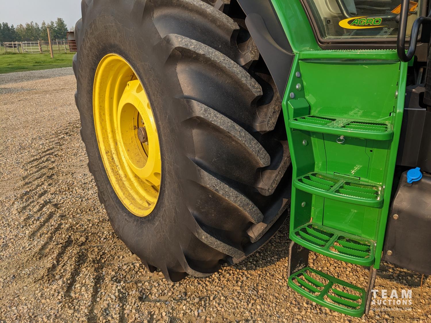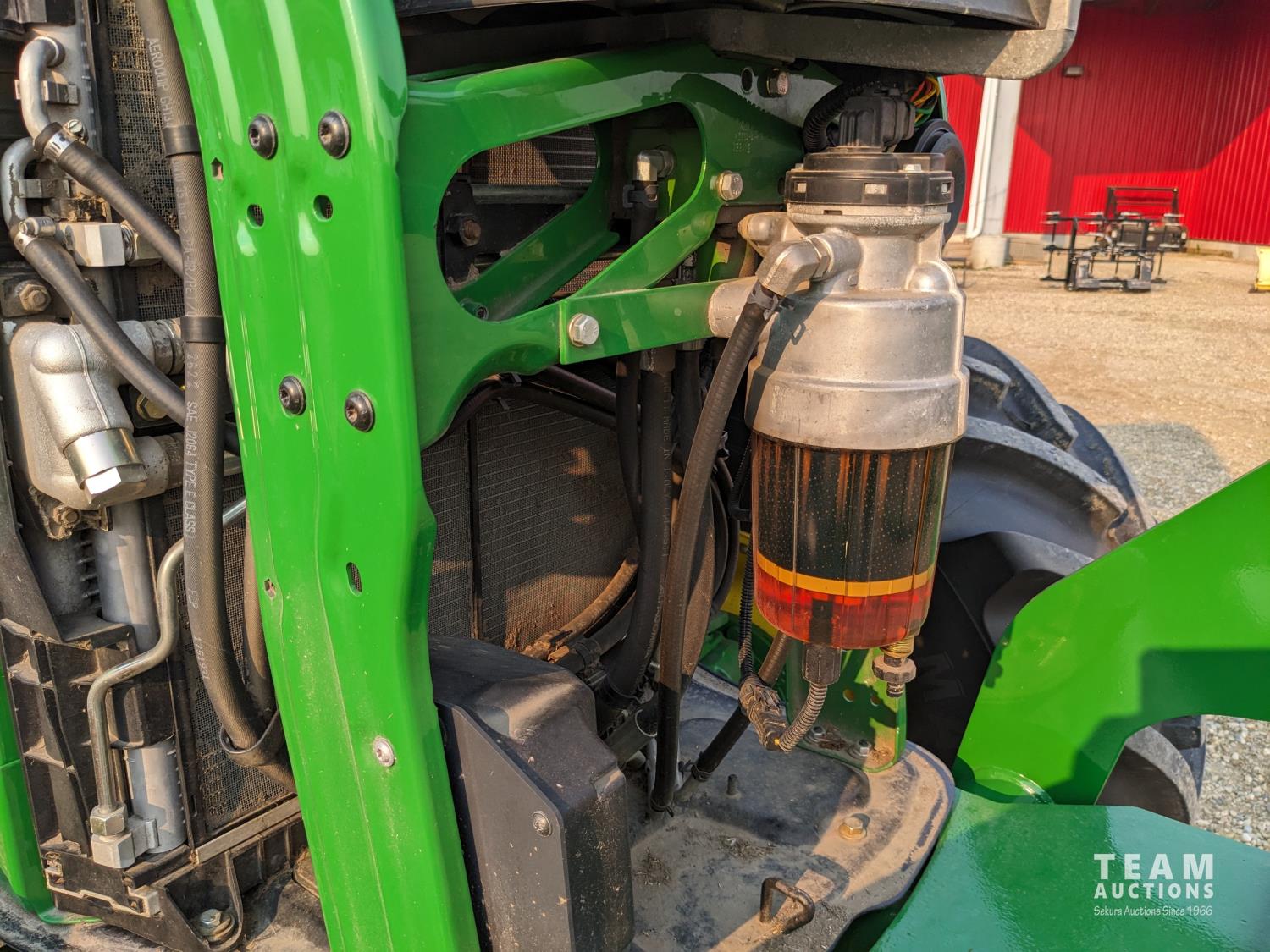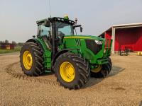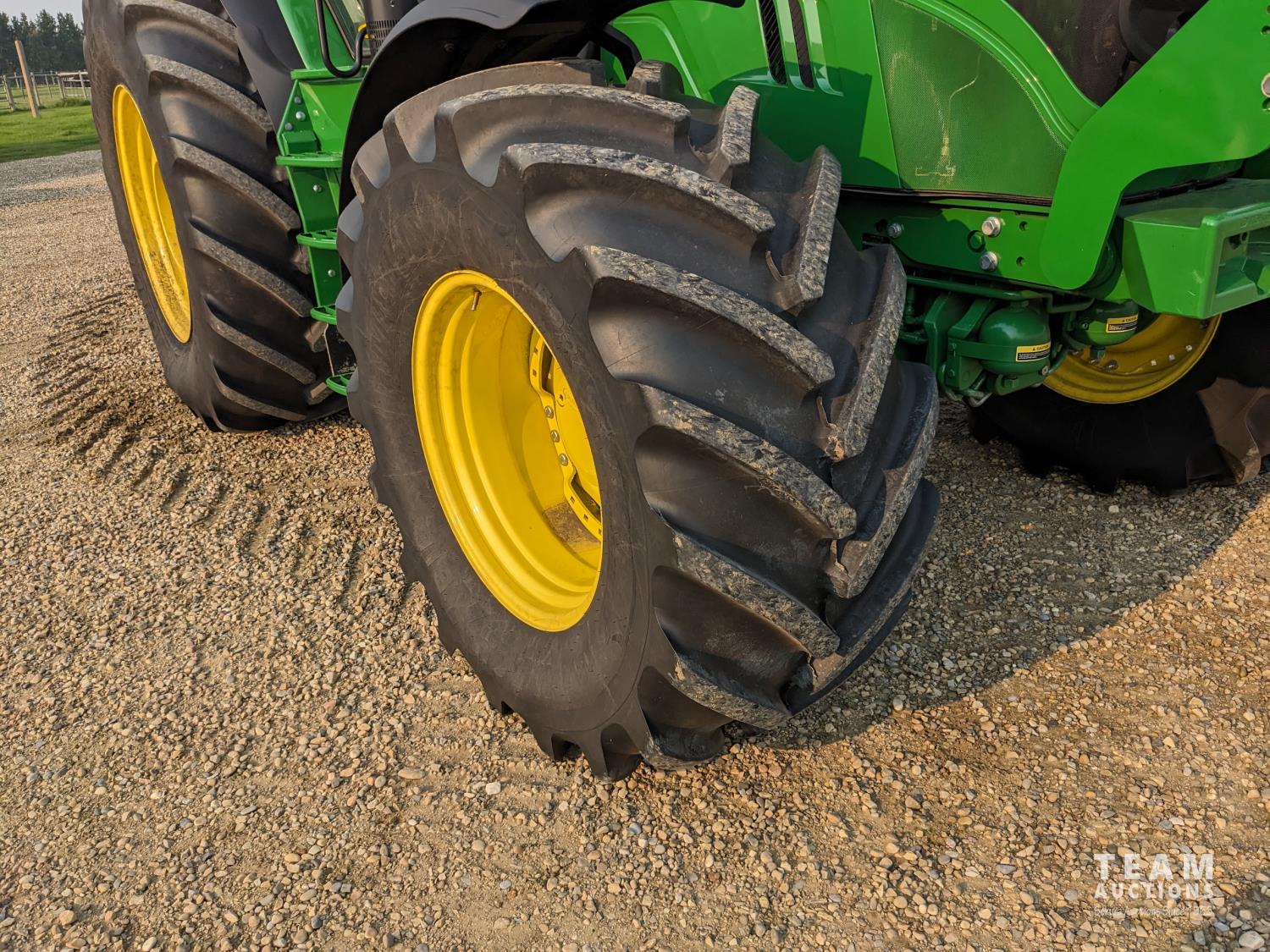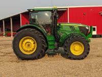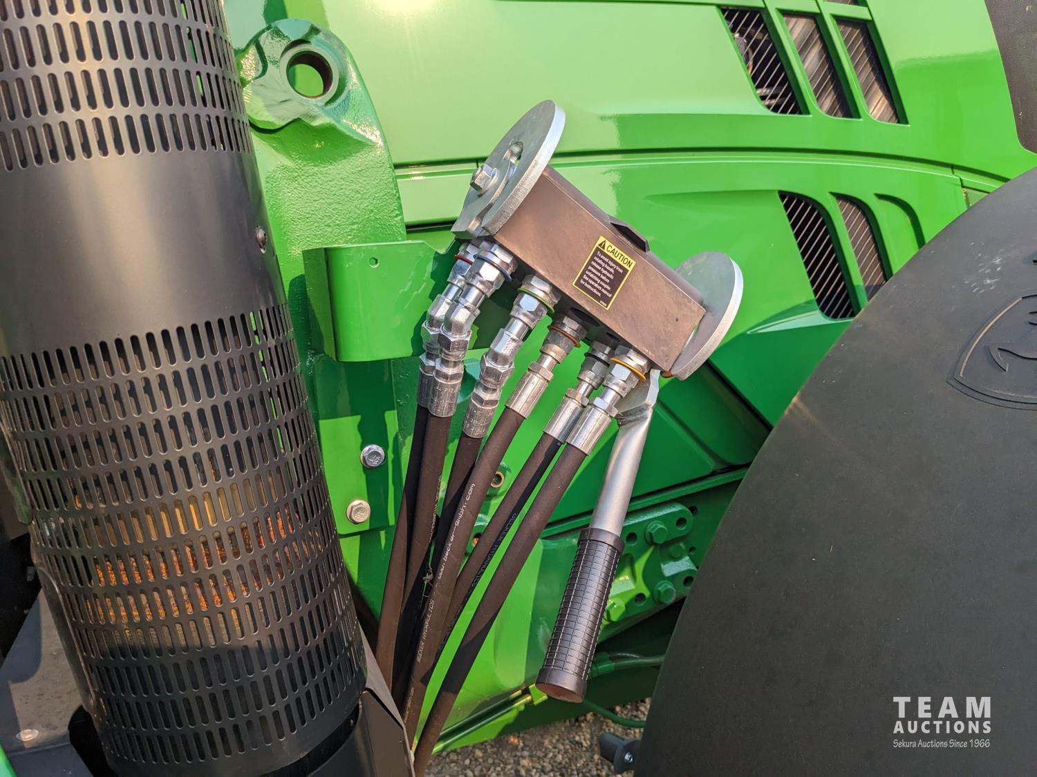 John Deere 6.8 L 6 cylinder 210 HP, diesel engine, 175 PTO HP, Auto Power IVT transmission, cab, left hand reverser, rear differential lock, joystick, A/C, radio, Star Fire 3000 GPS, front axle suspension, 540/1000 PTO, 3 point hitch, 3 point hitch exterior control, 4 rear hydraulic outlets, rear wheel weights, 600/65R28 front tires, 710/70R38 rear tires, loader ready with mid mount hydraulics