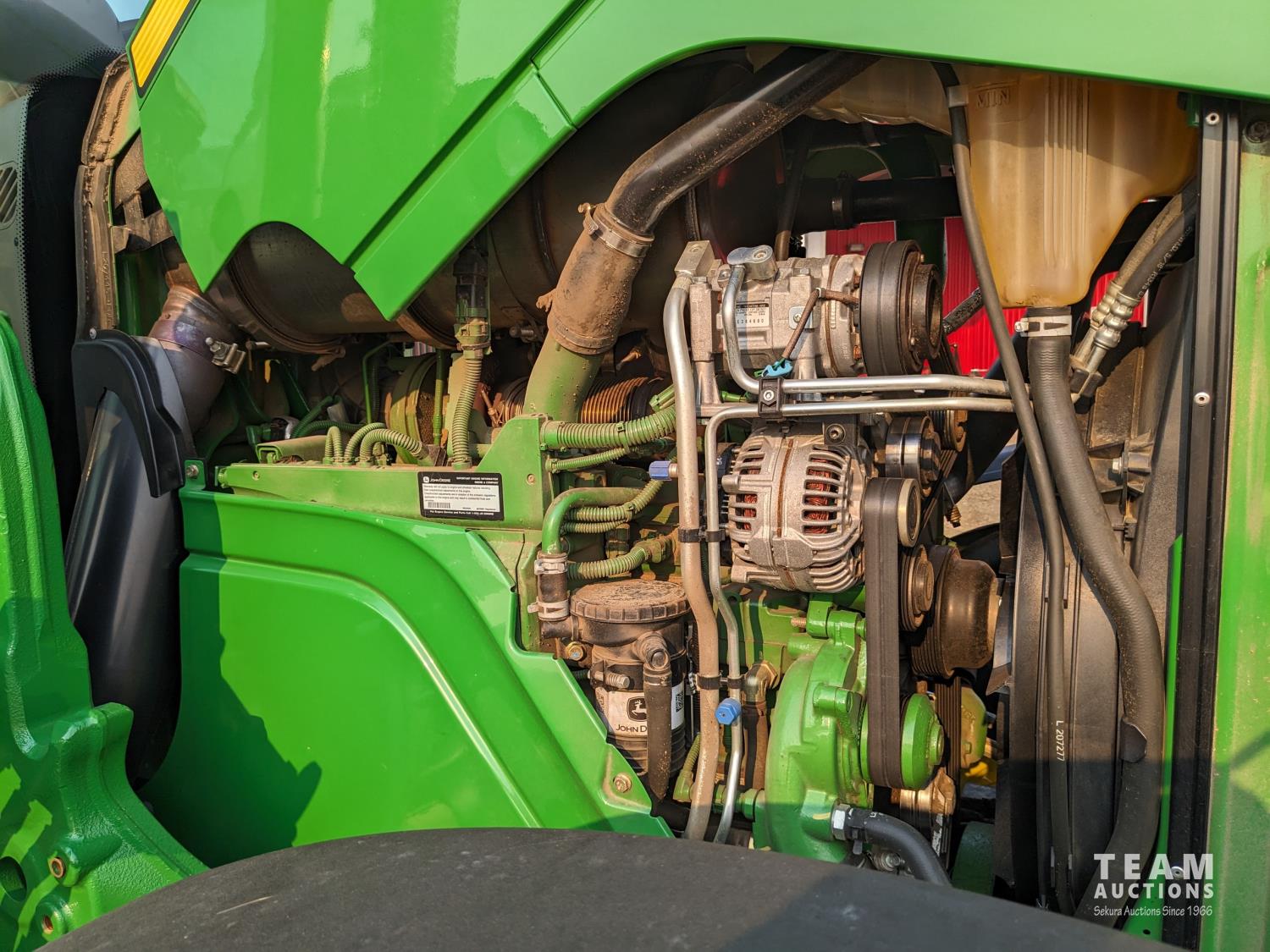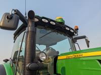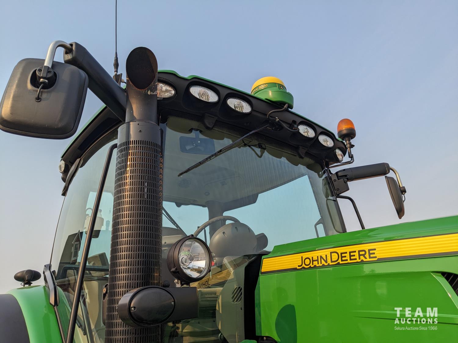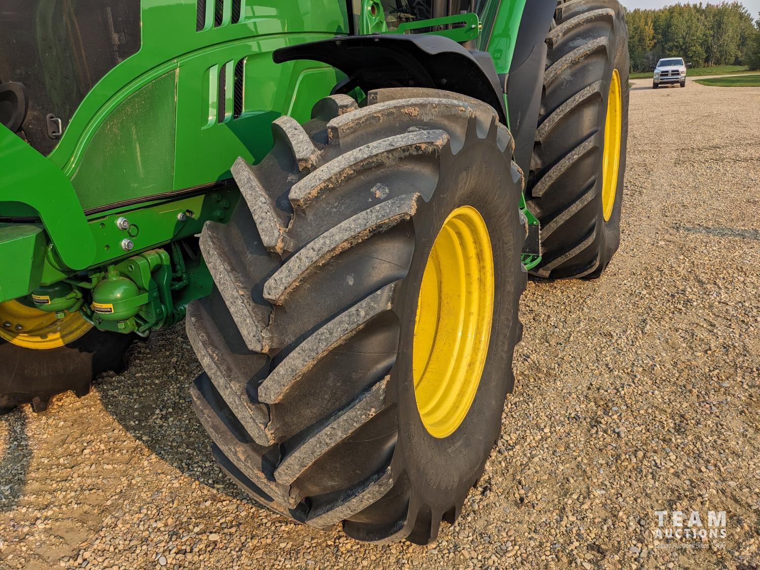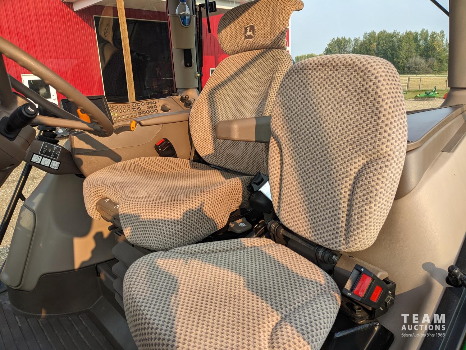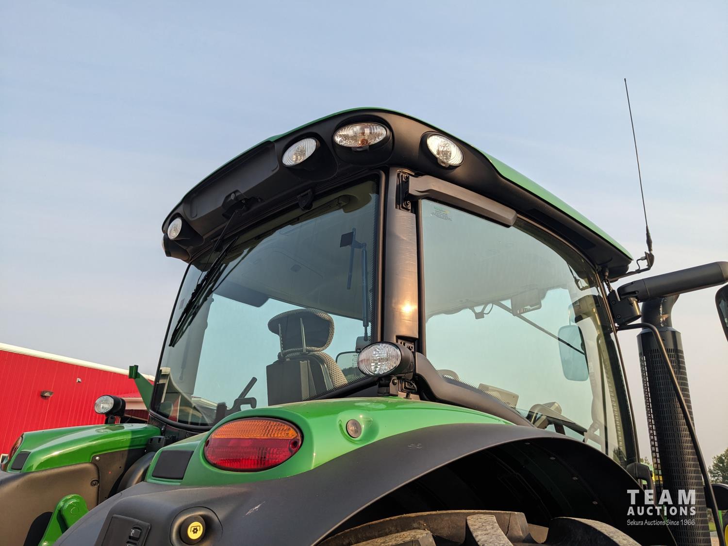 John Deere 6.8 L 6 cylinder 210 HP, diesel engine, 175 PTO HP, Auto Power IVT transmission, cab, left hand reverser, rear differential lock, joystick, A/C, radio, Star Fire 3000 GPS, front axle suspension, 540/1000 PTO, 3 point hitch, 3 point hitch exterior control, 4 rear hydraulic outlets, rear wheel weights, 600/65R28 front tires, 710/70R38 rear tires, loader ready with mid mount hydraulics