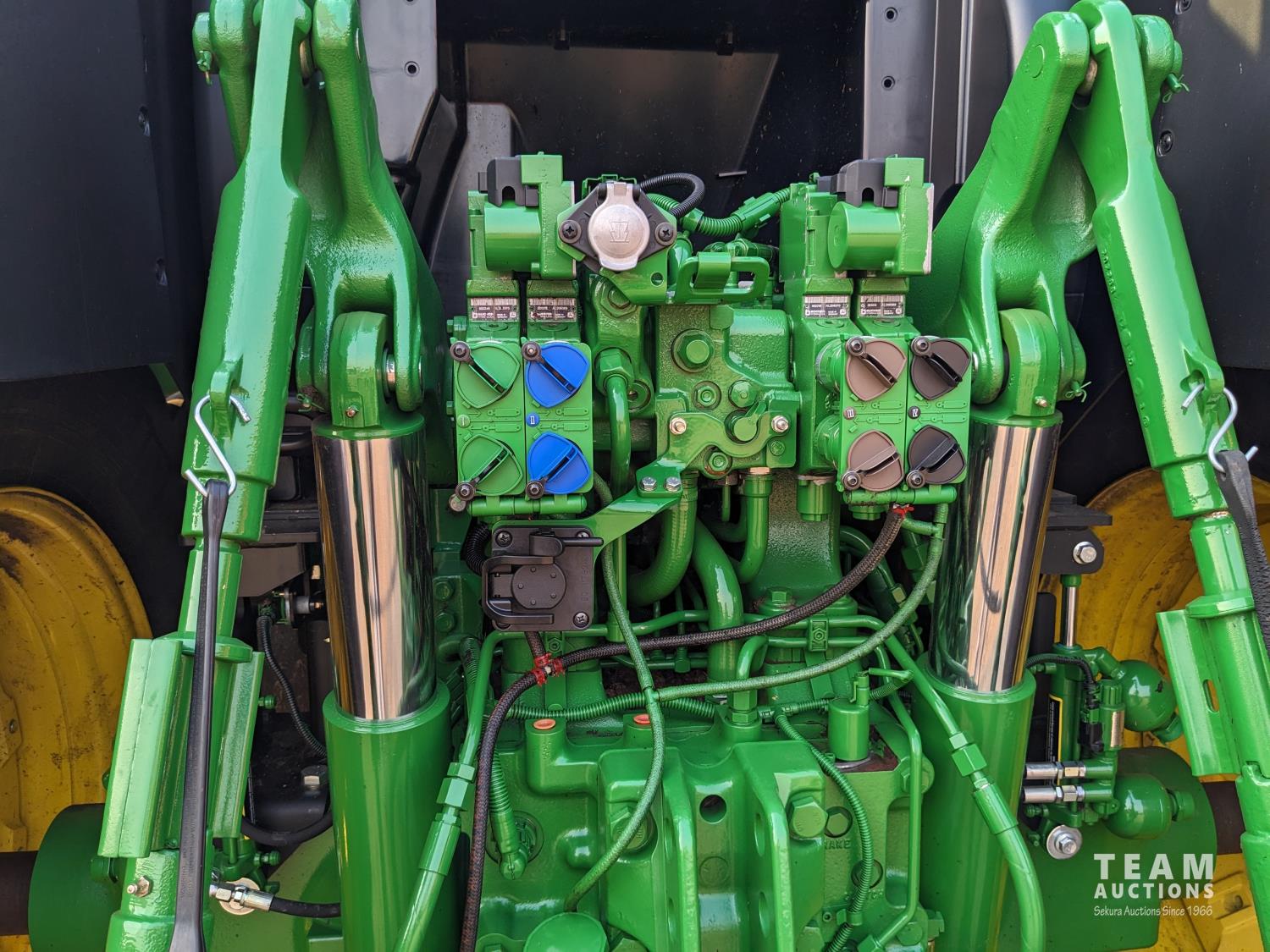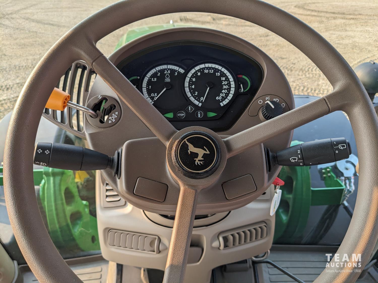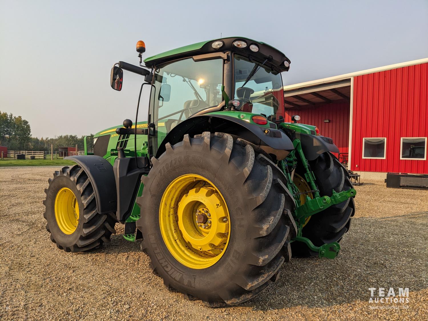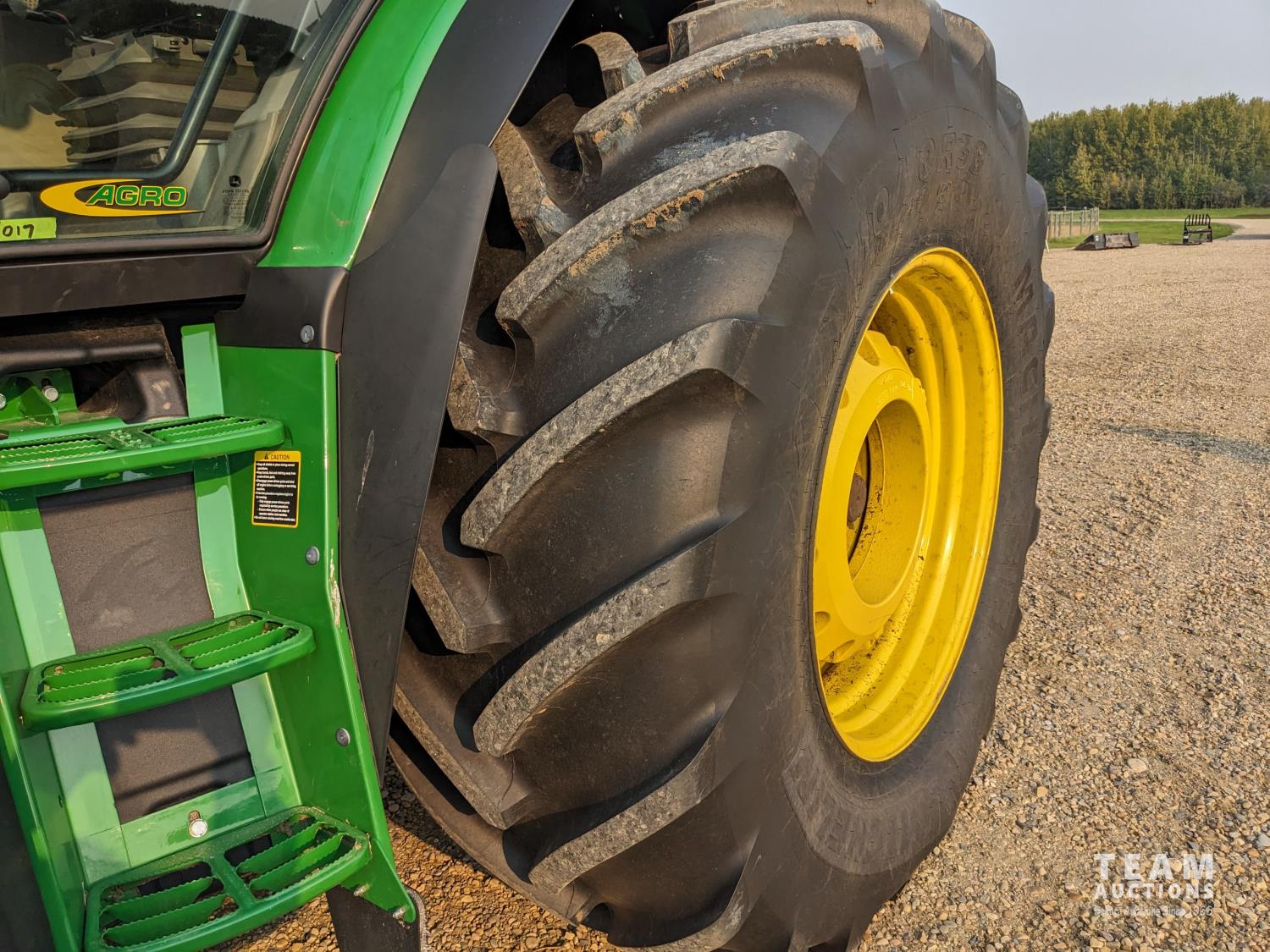 John Deere 6.8 L 6 cylinder 210 HP, diesel engine, 175 PTO HP, Auto Power IVT transmission, cab, left hand reverser, rear differential lock, joystick, A/C, radio, Star Fire 3000 GPS, front axle suspension, 540/1000 PTO, 3 point hitch, 3 point hitch exterior control, 4 rear hydraulic outlets, rear wheel weights, 600/65R28 front tires, 710/70R38 rear tires, loader ready with mid mount hydraulics