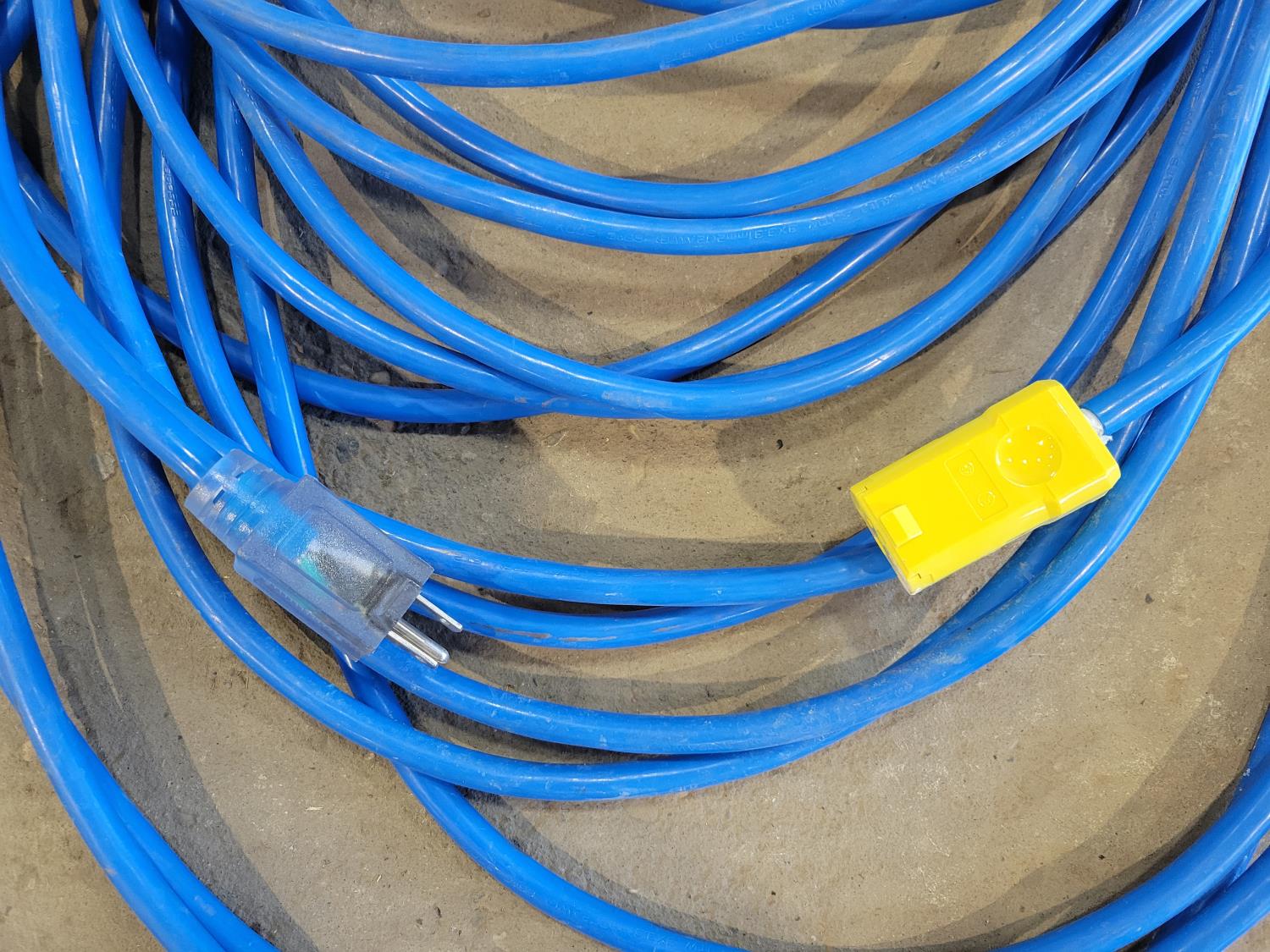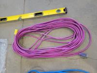 (2) 100 ft extension cords, Stanley FatMax 4 ft level, (4) 9 ft x 12 ft poly tarps