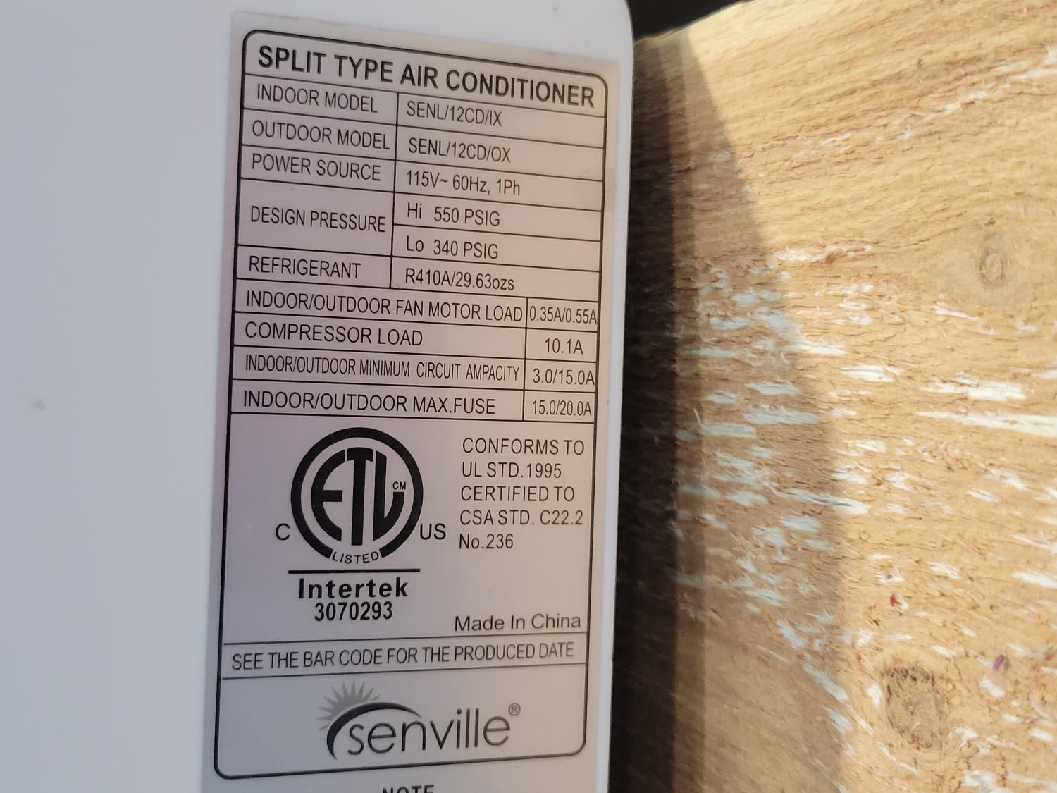 904 Senville 12CD Split Type Air Conditioner