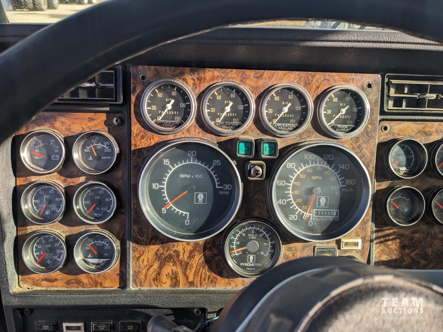 Detroit 60 SERIES 11.1 L 6 cylinder 550 HP diesel engine, positive air shutoff, Eaton Fuller 18 speed manual transmission, A/C, radio, aluminum headache rack, air ride suspension, 40,000 lb rear axles, diff lock, aluminum outer wheels, 11R22.5 tires