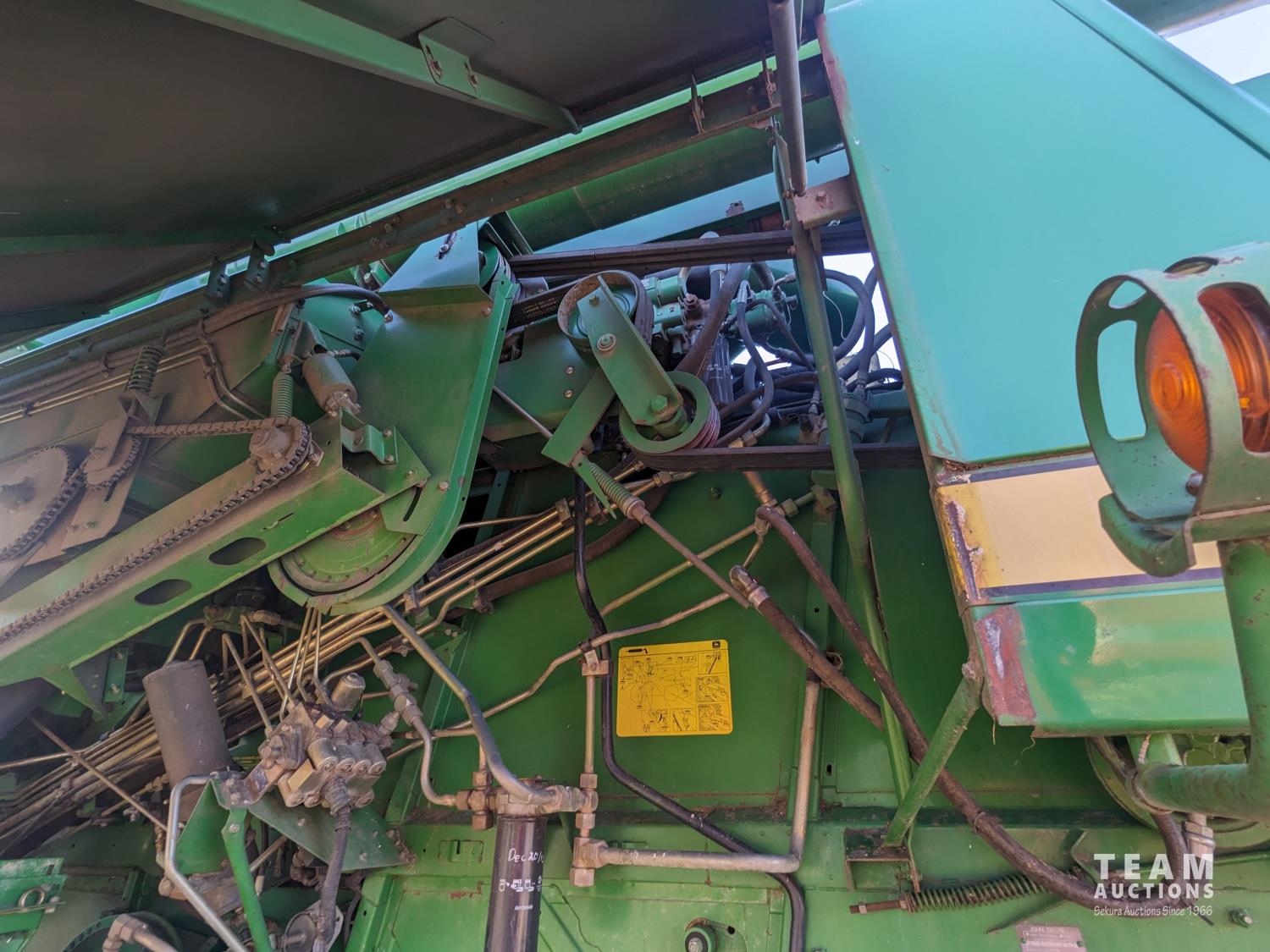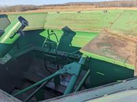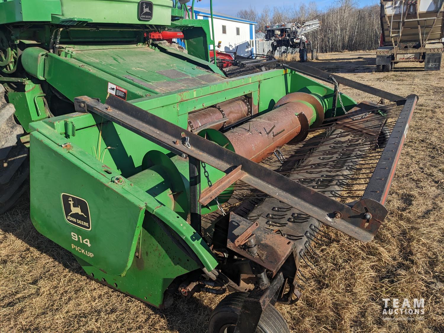 John Deere 914 14 ft pick-up header, Melroe 388 7 rubber belt pickup, reverser, chopper, Big Top hopper extension, A/C, radio, buddy seat, 30.5L-32 front tires, 14.9-24 rear tires