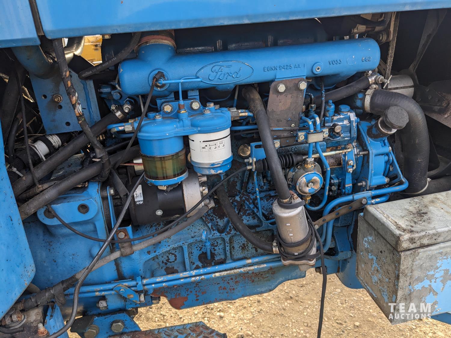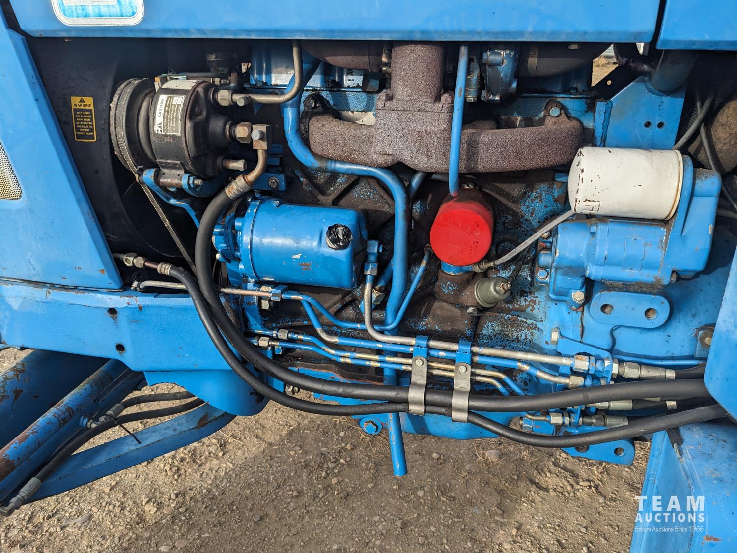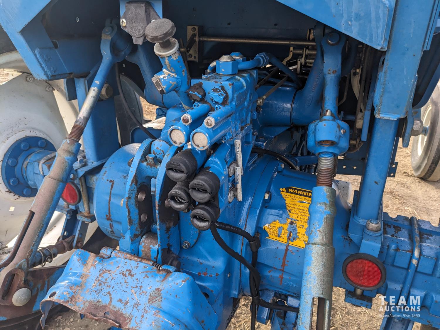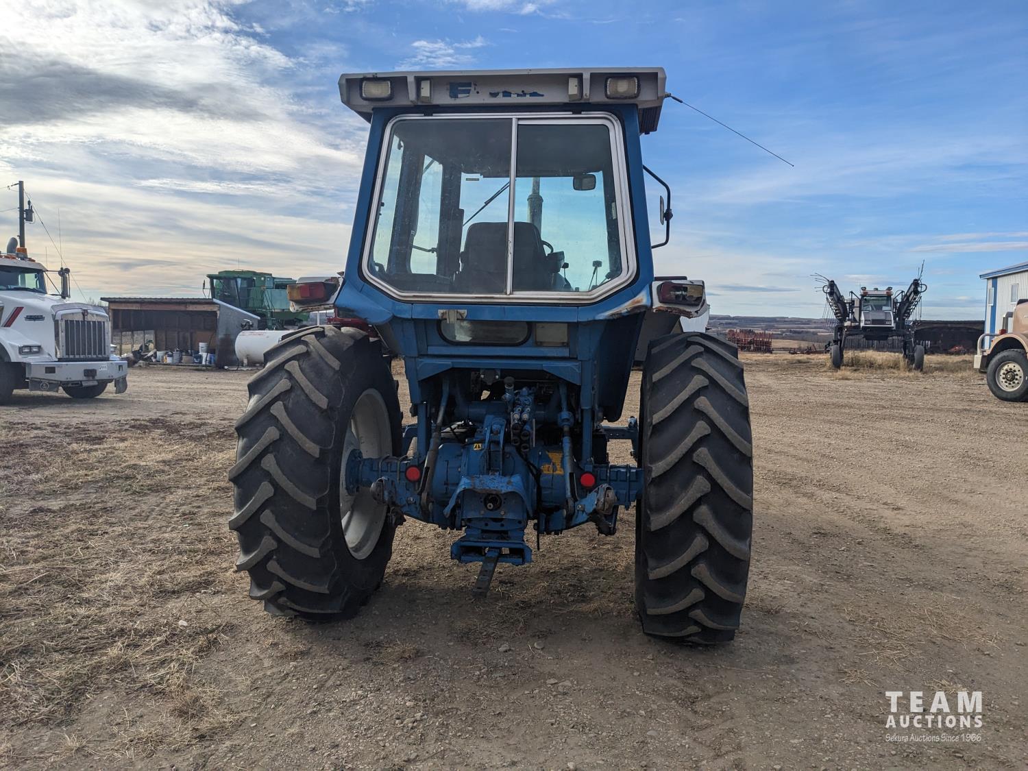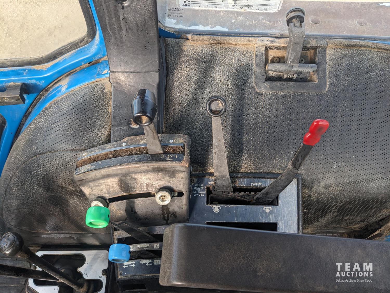 Ford 4.4 L 4 cylinder 97 HP, diesel engine, 86 PTO HP, 16 speed partial power shift transmission, cab, rear differential lock, A/C, radio, 540/1000 PTO, 3 point hitch, 2 rear hydraulic outlets, 10.00-16 front tires, 18.4-34 rear tires