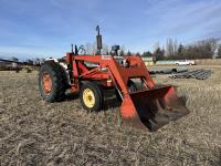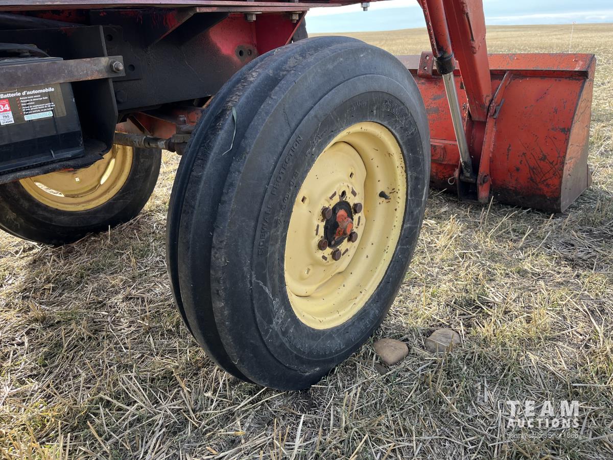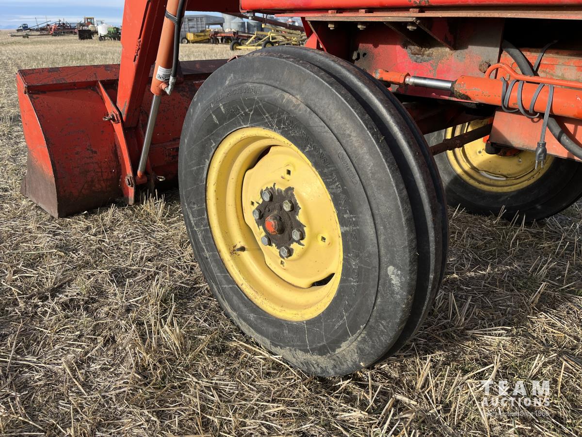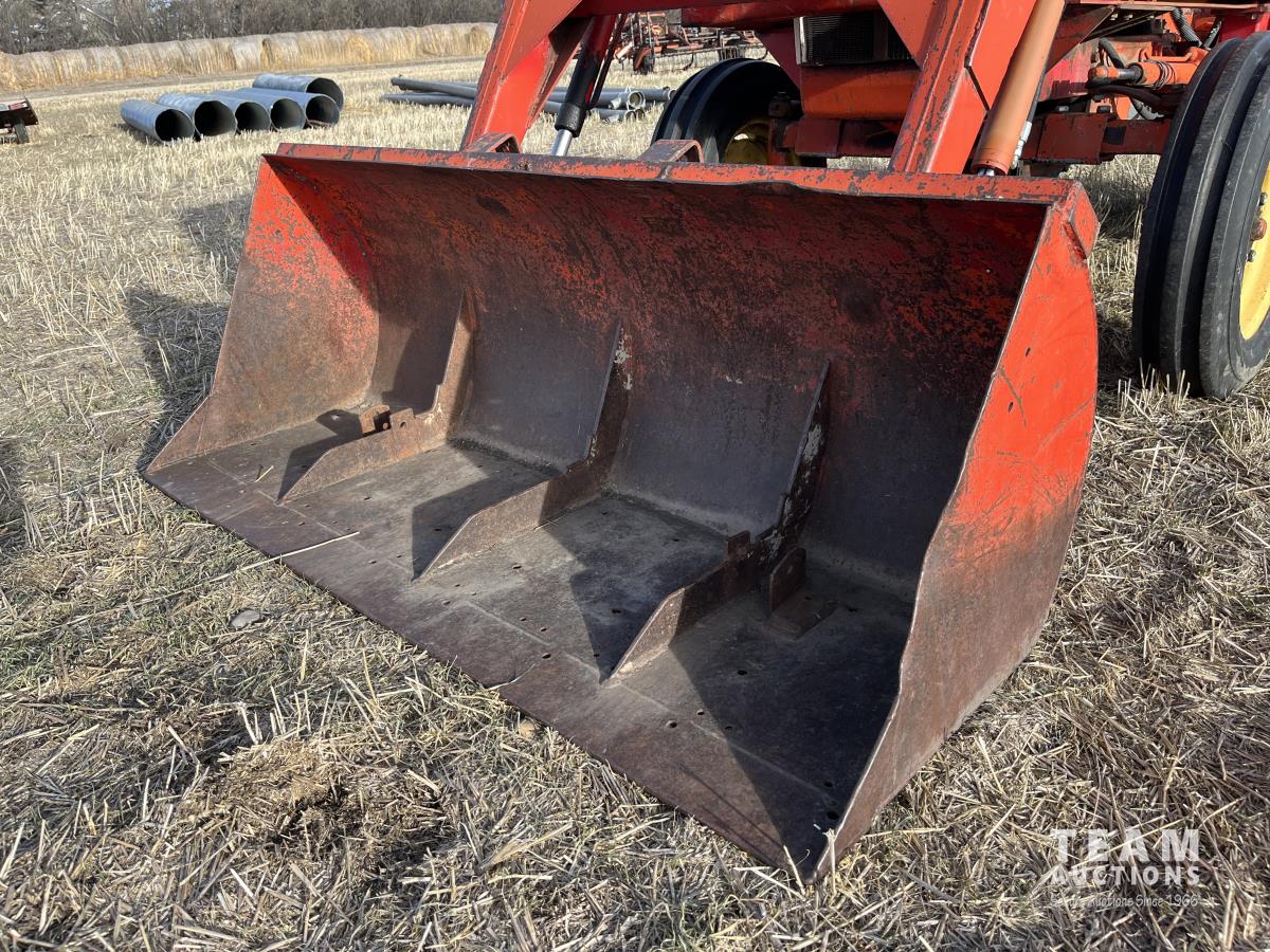 Allied loader, 72 inch bucket, 4 cylinder 62 HP, diesel engine, 58 PTO HP, 540 PTO, 3 point hitch, 1 rear hydraulic outlets, 7.50-18 front tires, 16.9/14-30 rear tires