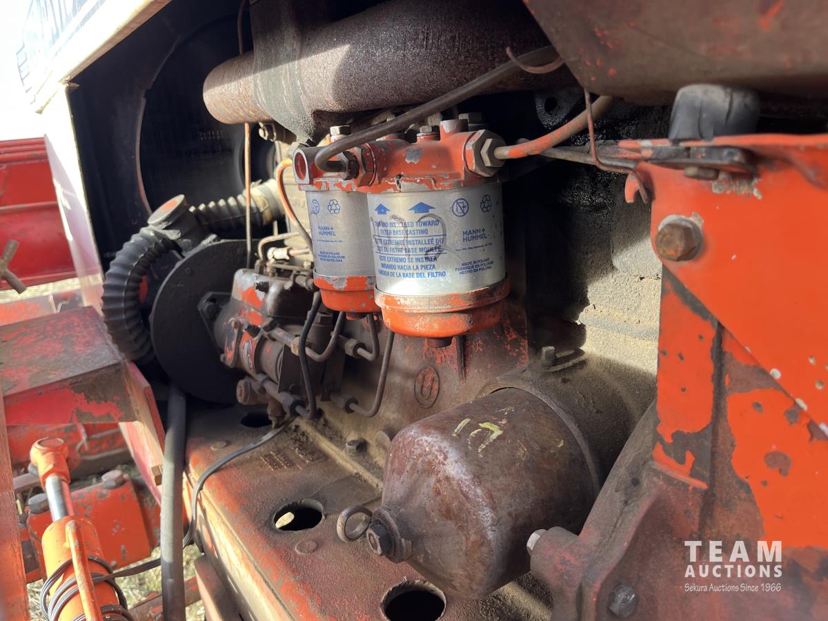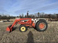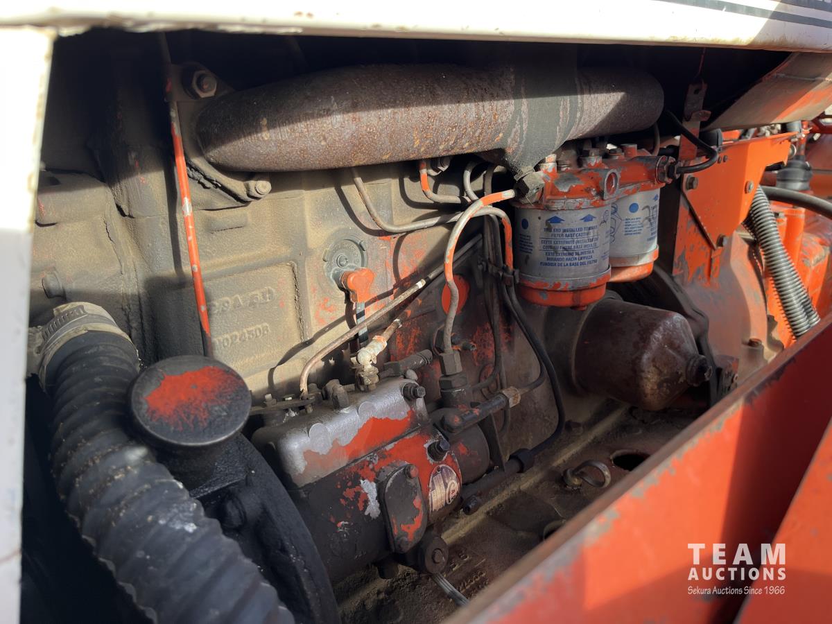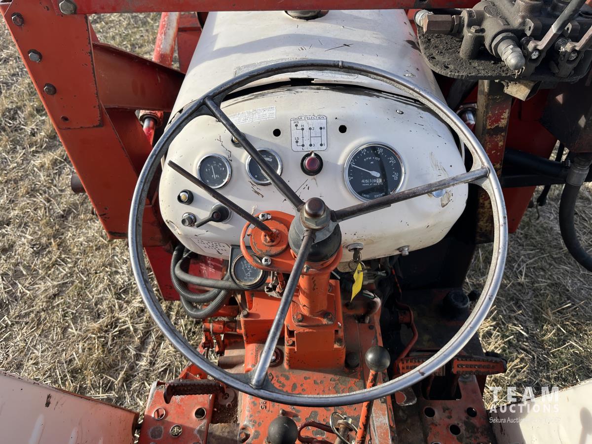 Allied loader, 72 inch bucket, 4 cylinder 62 HP, diesel engine, 58 PTO HP, 540 PTO, 3 point hitch, 1 rear hydraulic outlets, 7.50-18 front tires, 16.9/14-30 rear tires