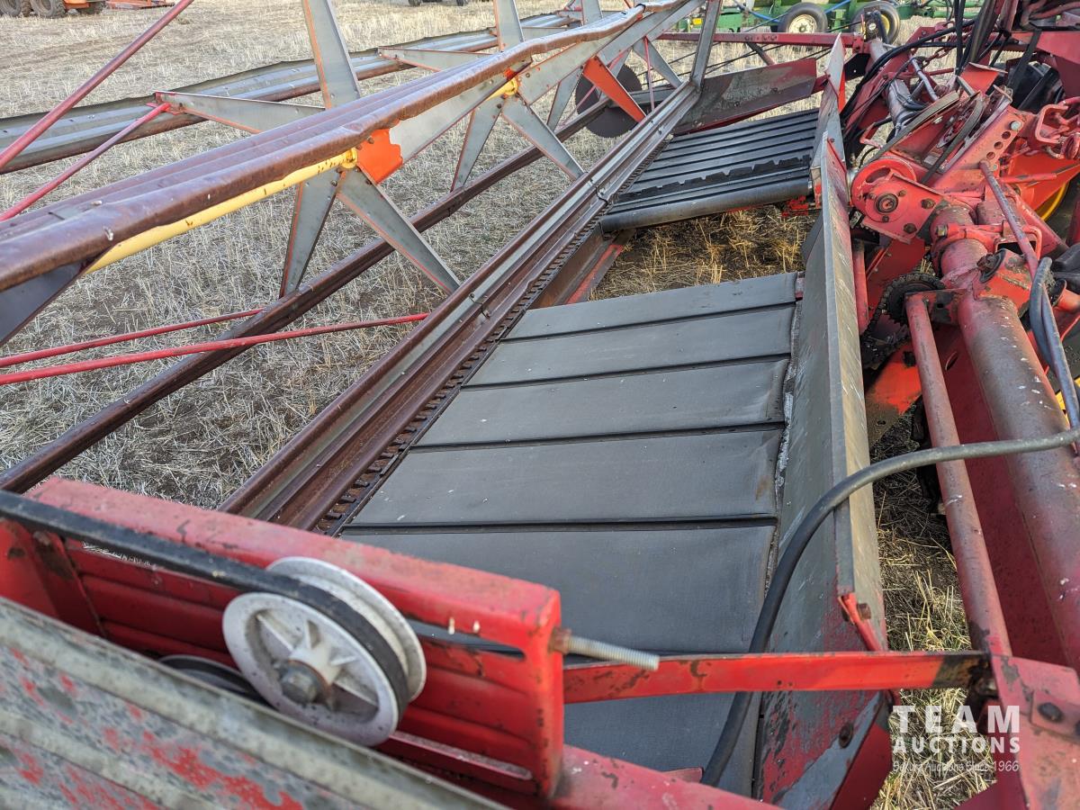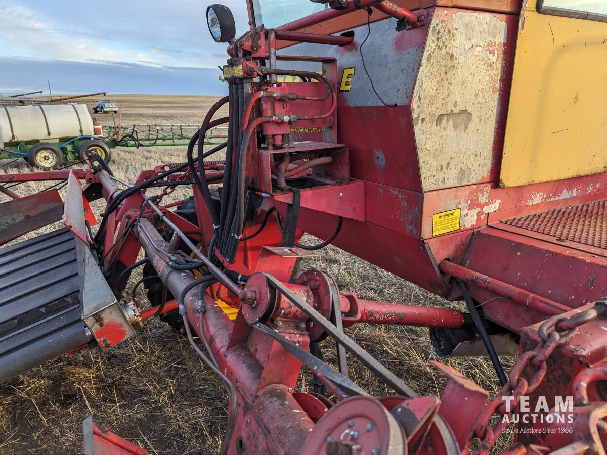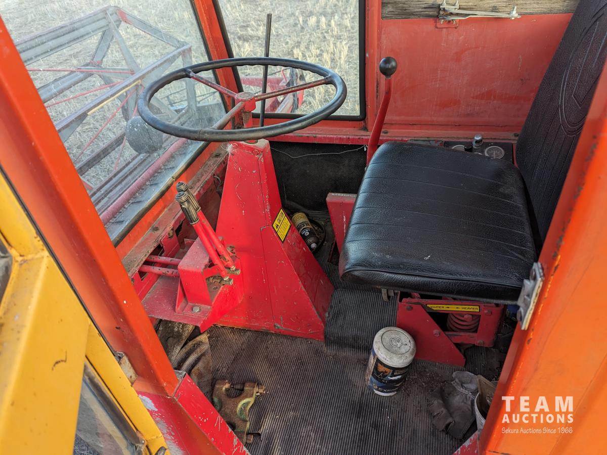 1979 Versatile 400 center delivery rigid draper header, batt reel, crop dividers, Ford 6 cylinder diesel engine, 11.2/10-24 front tires, 7.6-15SL rear tires