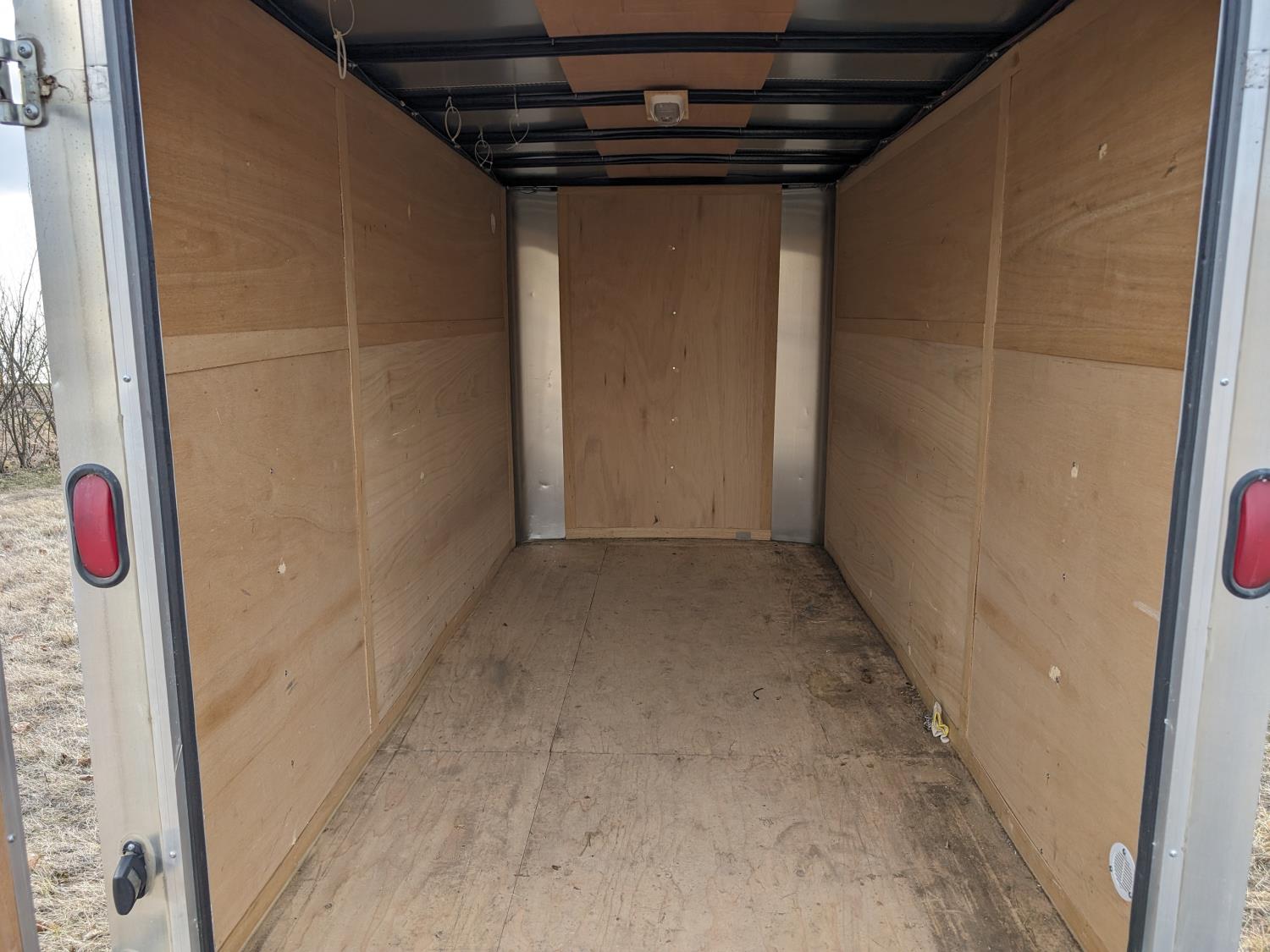 68 inch interior width, 75 inch interior height, ball hitch, barn doors, electric brakes, spring suspension, interior lights, 2" ball, 2990 lb axles, 205/74R14 tires