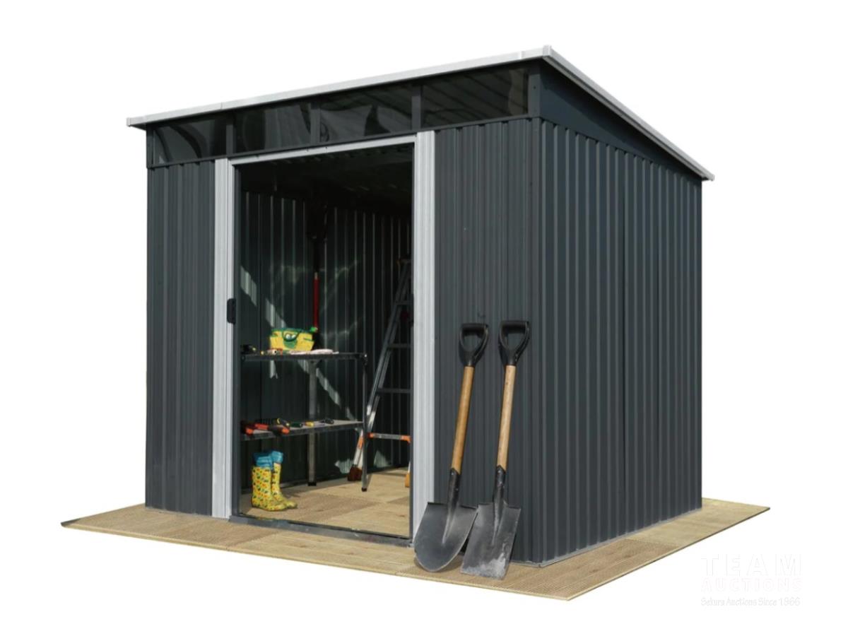 607 TMG Industrial MS0809P 8 Ft X 9 Ft Galvanized Metal Pent Shed W/Skylight (Unused)