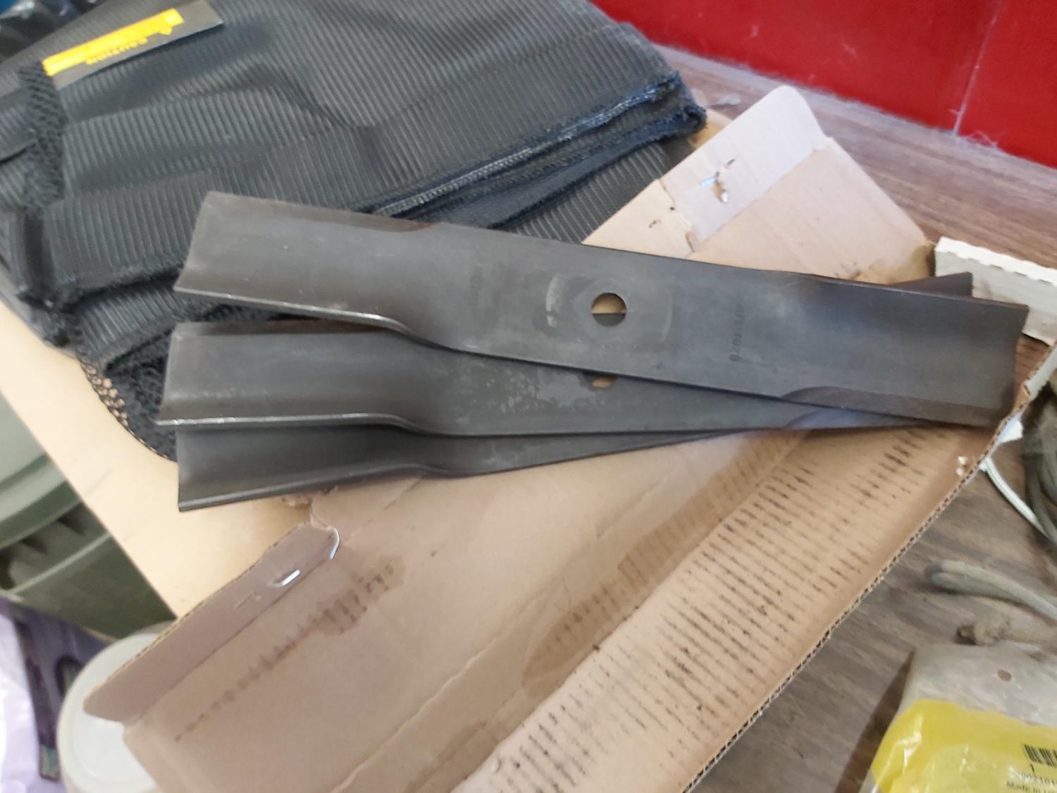 55 (3) 16 Inch Mower Blades & Misc Lawn Mower Parts