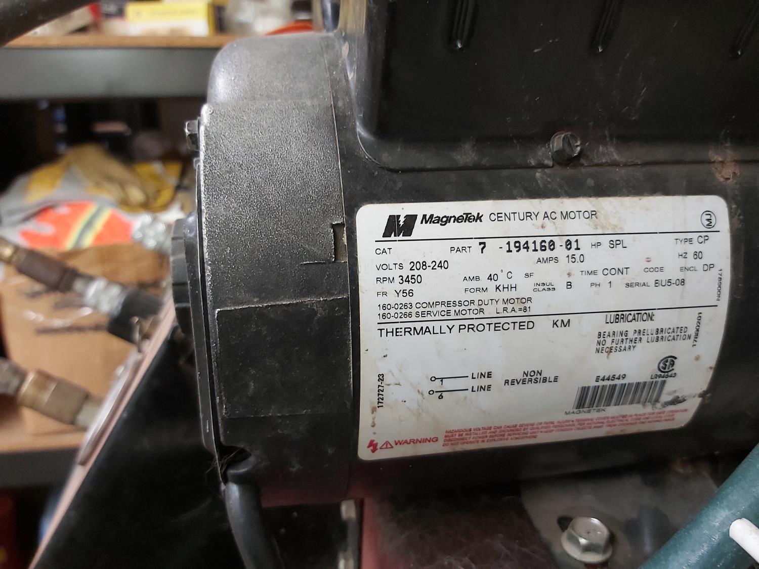 7 HP electric motor, 230 volt, single phase, 12.9 CFM