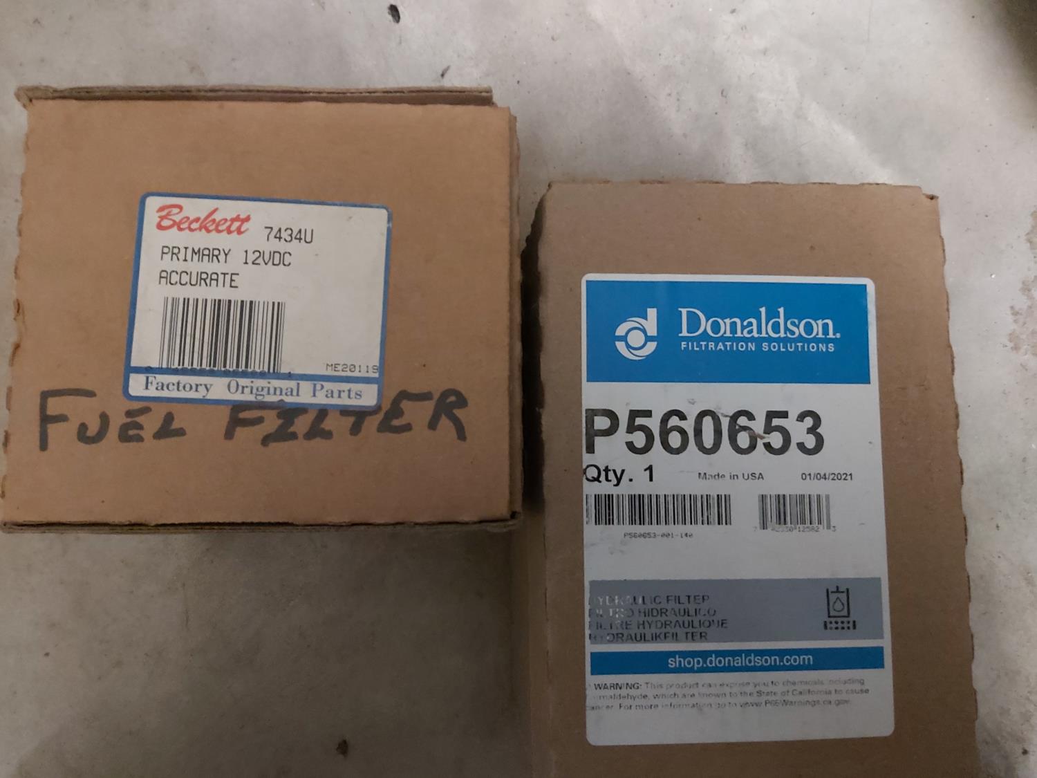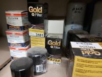 37 Qty of Oil & Air Filters, (2) Boxes of Nitrile Gloves