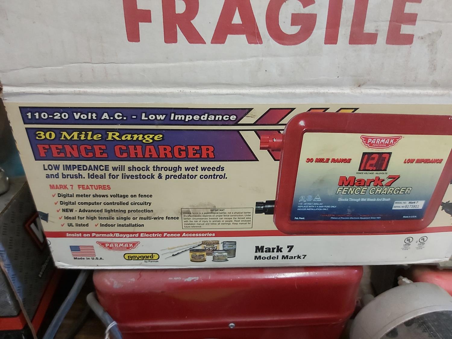 (2) Mark 7 Fencers, (1) Patriot Fencer, Wilson starter and alternator, Delco alternator, Honeywell programmable thermostat, tank float, ()3) John Deere lawn tractor blades, mower deck hubs