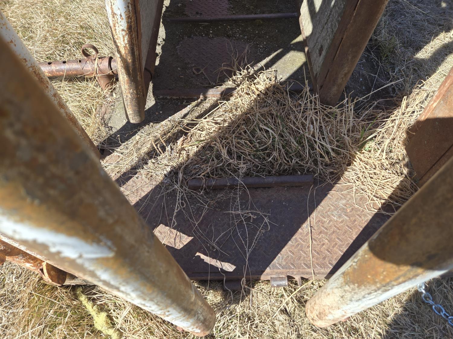 metal floor, auto catch head gate, shop built rear sliding gate