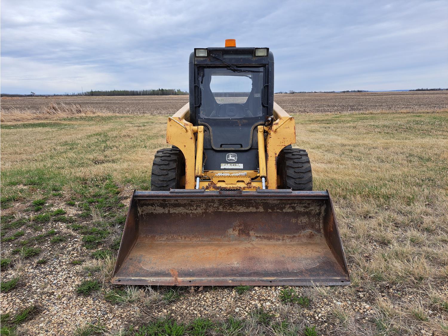 Enclosed cab, A/C, diesel engine, foot & lever control, 70 inch smooth bucket, 2 auxiliary hydraulics, 12-16.5 tires