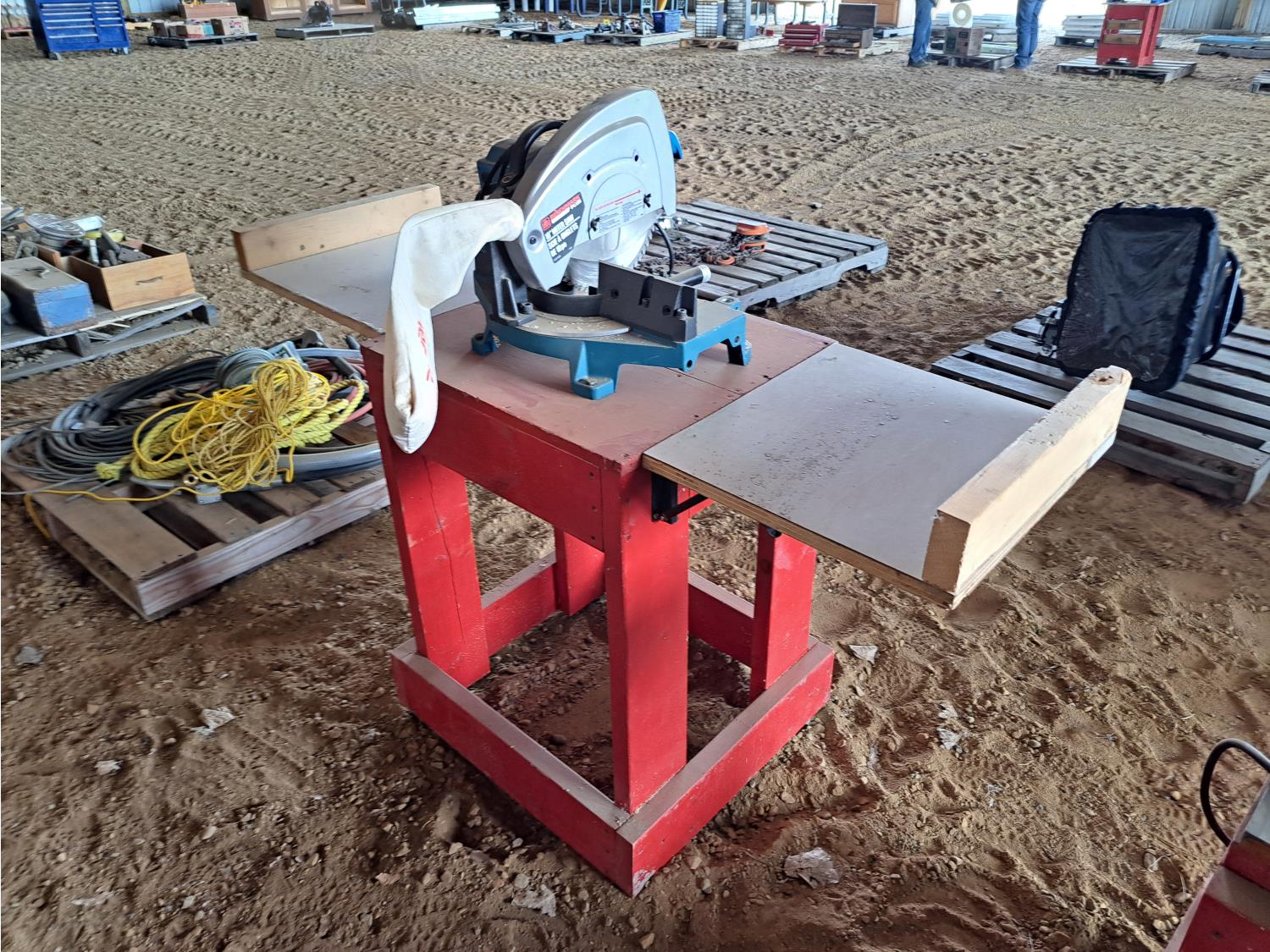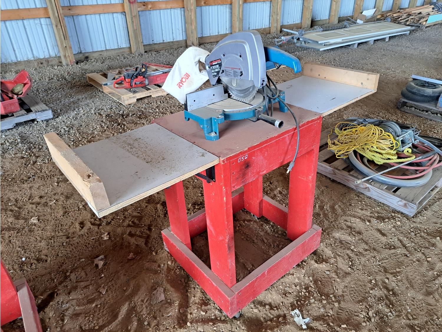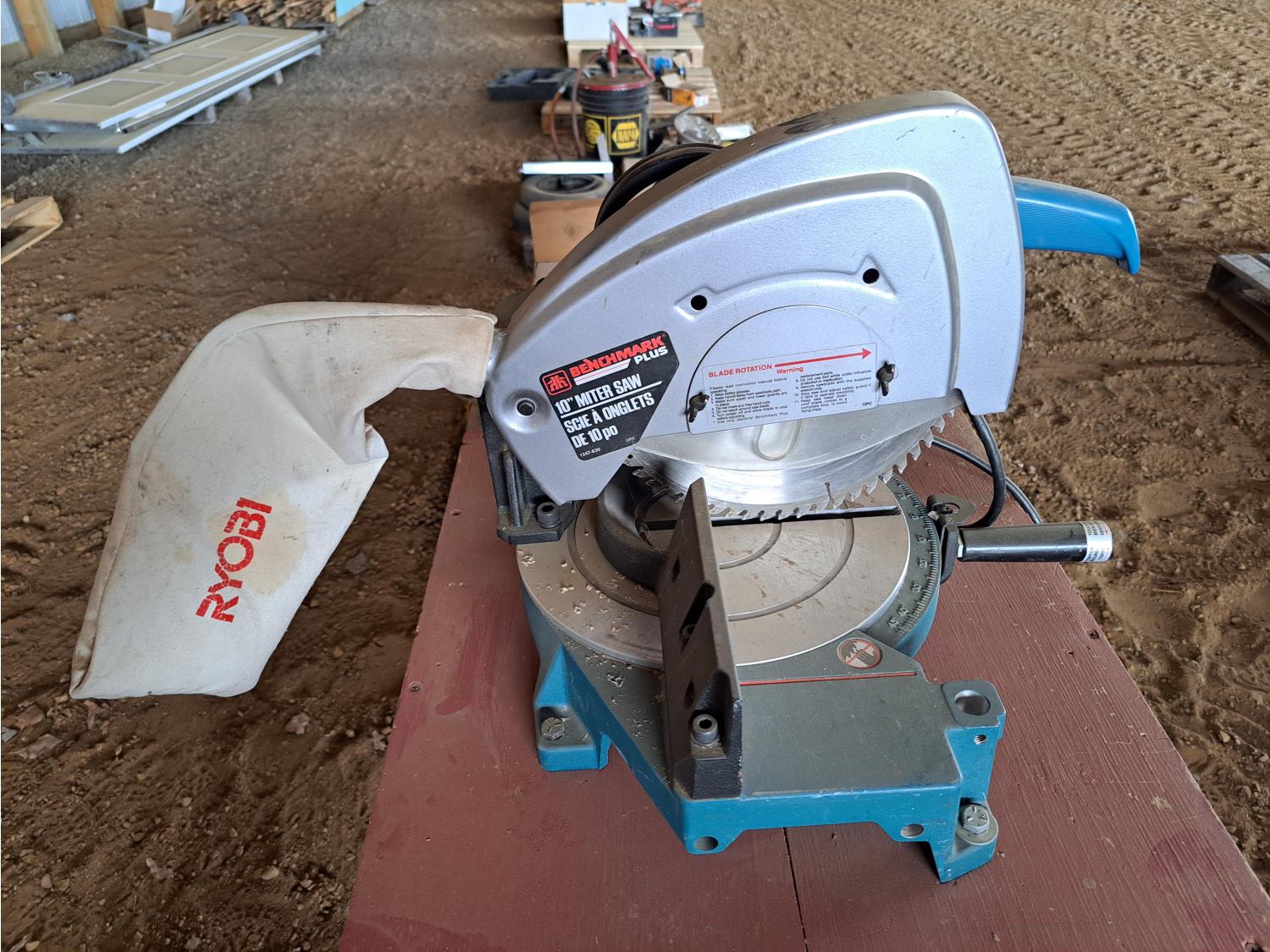 62 Benchmark 10 Inch Miter Saw On Wooden Work Bench