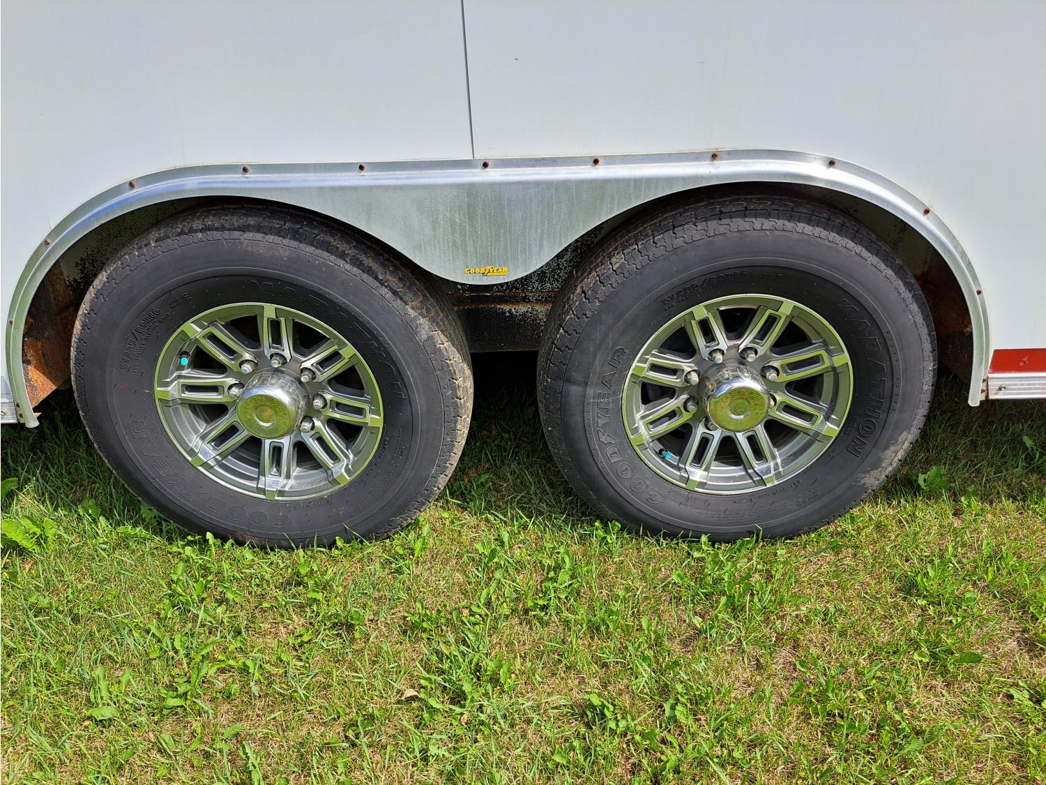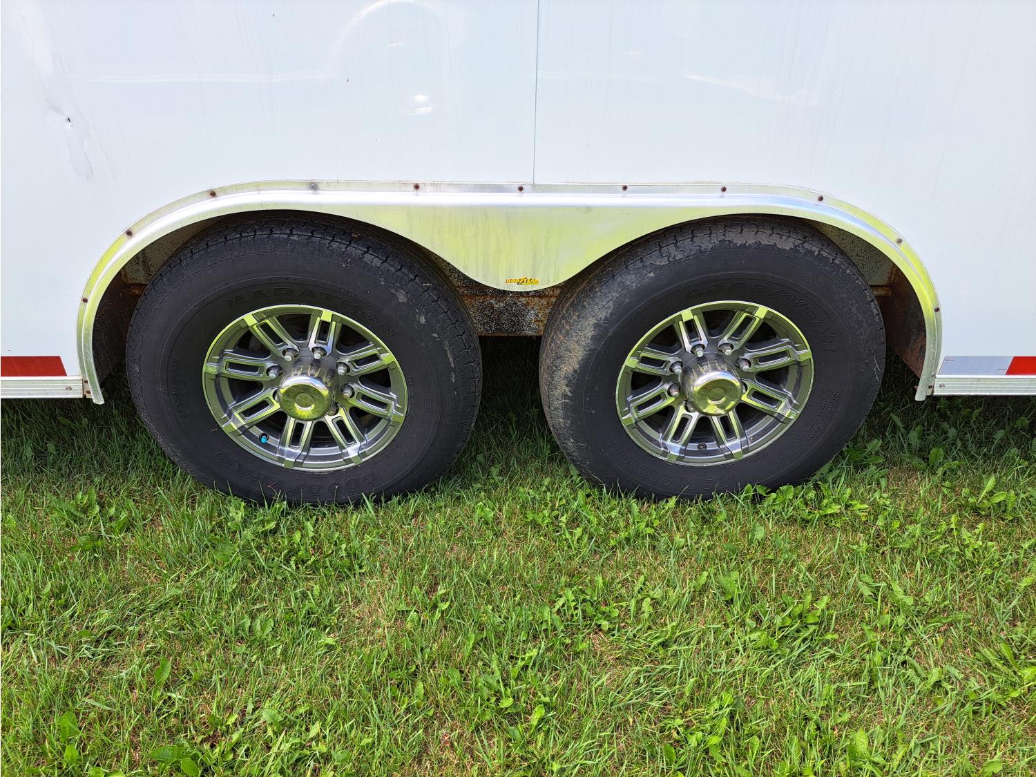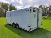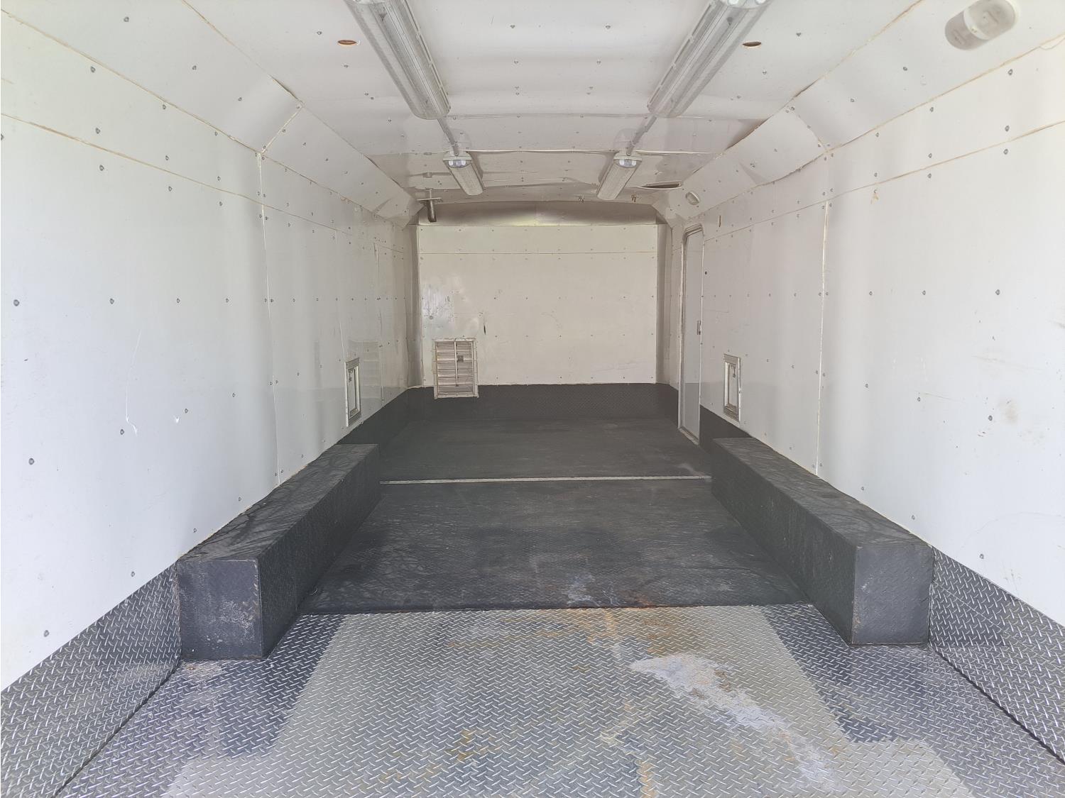 96 inch interior width, 72 inch interior height, ball hitch, side door, barn doors, spring suspension, 7000 lb axles, 235/80R16 tires