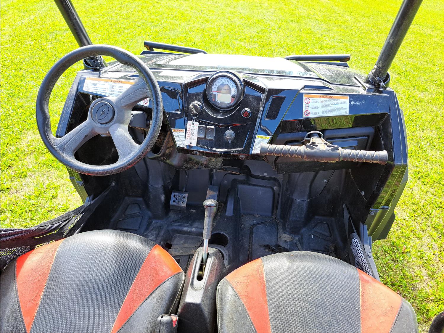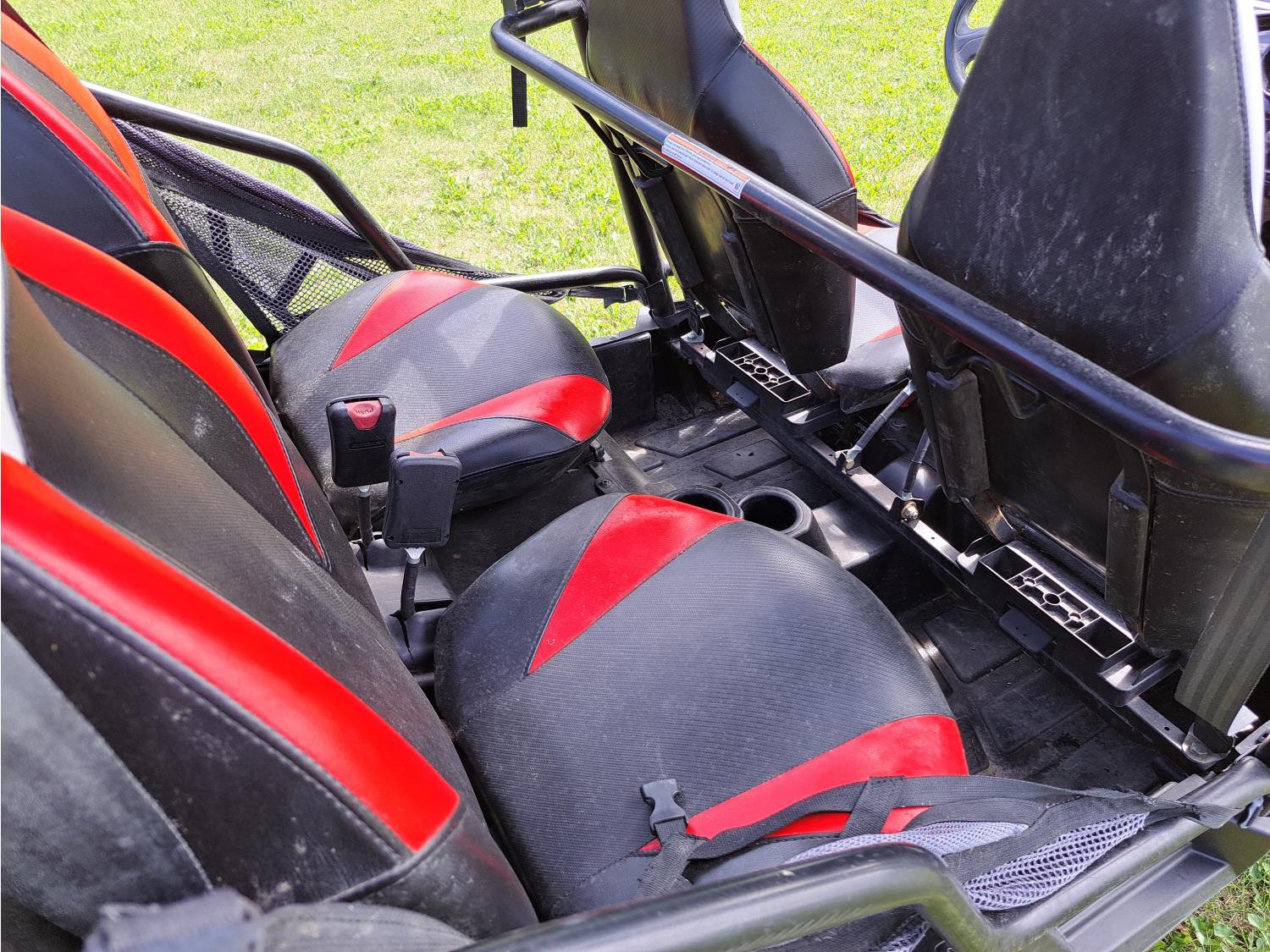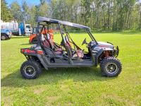 800 cc engine, automatic transmission, 4 passengers, front winch, front brush guard, independent suspension, 26X9R12 front tires, 26X12X12 rear tires