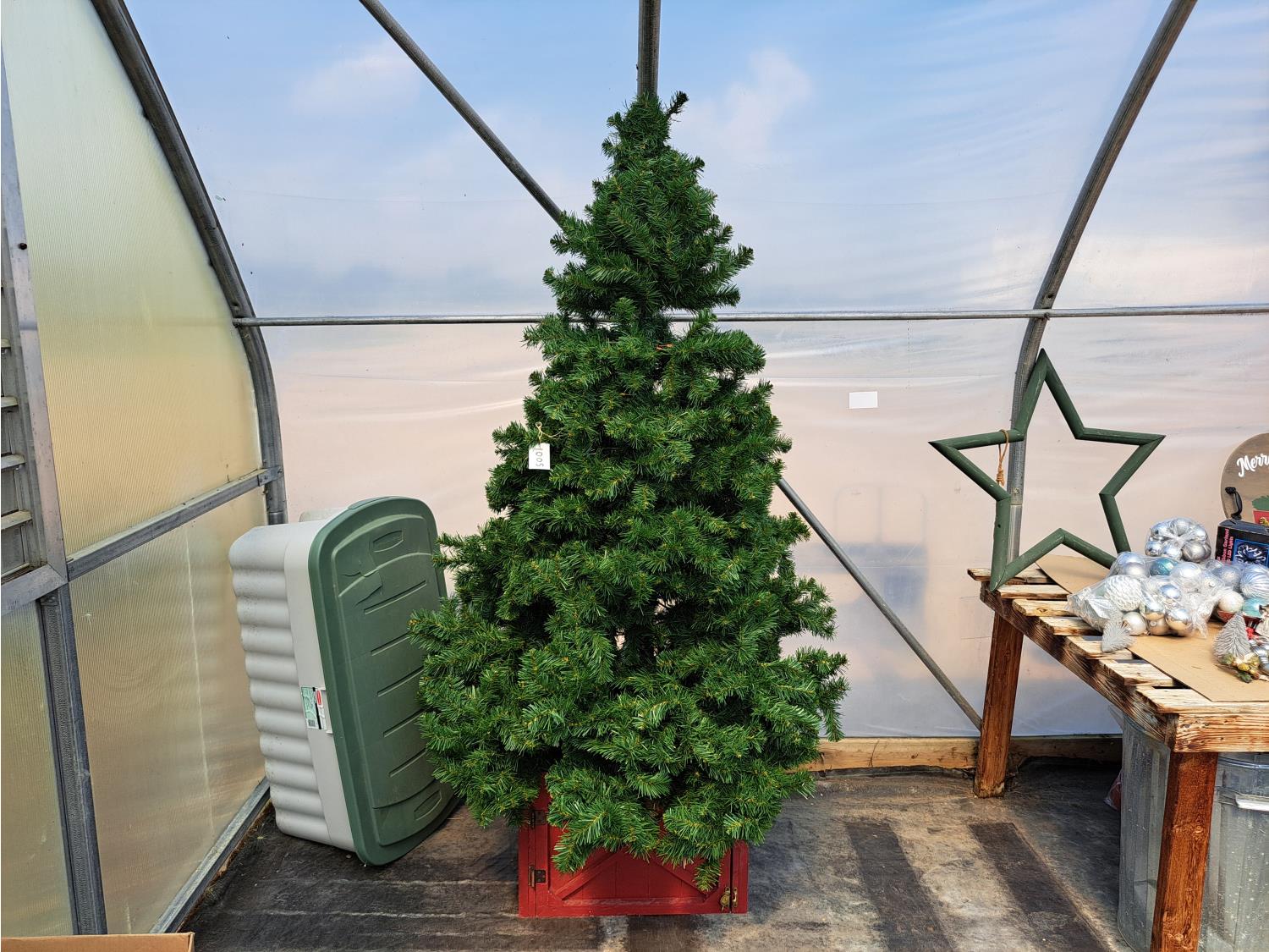 1005 7 Ft Artificial Tree with Storage Box and Wood Tree Skirt