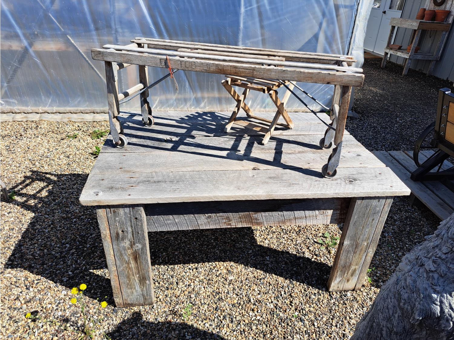 804 Barn Board Table, Vintage Tub Stand